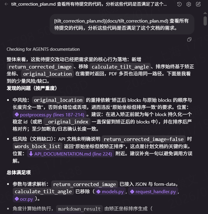 一般 Codex 会指出多个风险点,可以逐一核查,也可让 LLM 先判断是否属实;确认存在后,再让 Codex 修改。