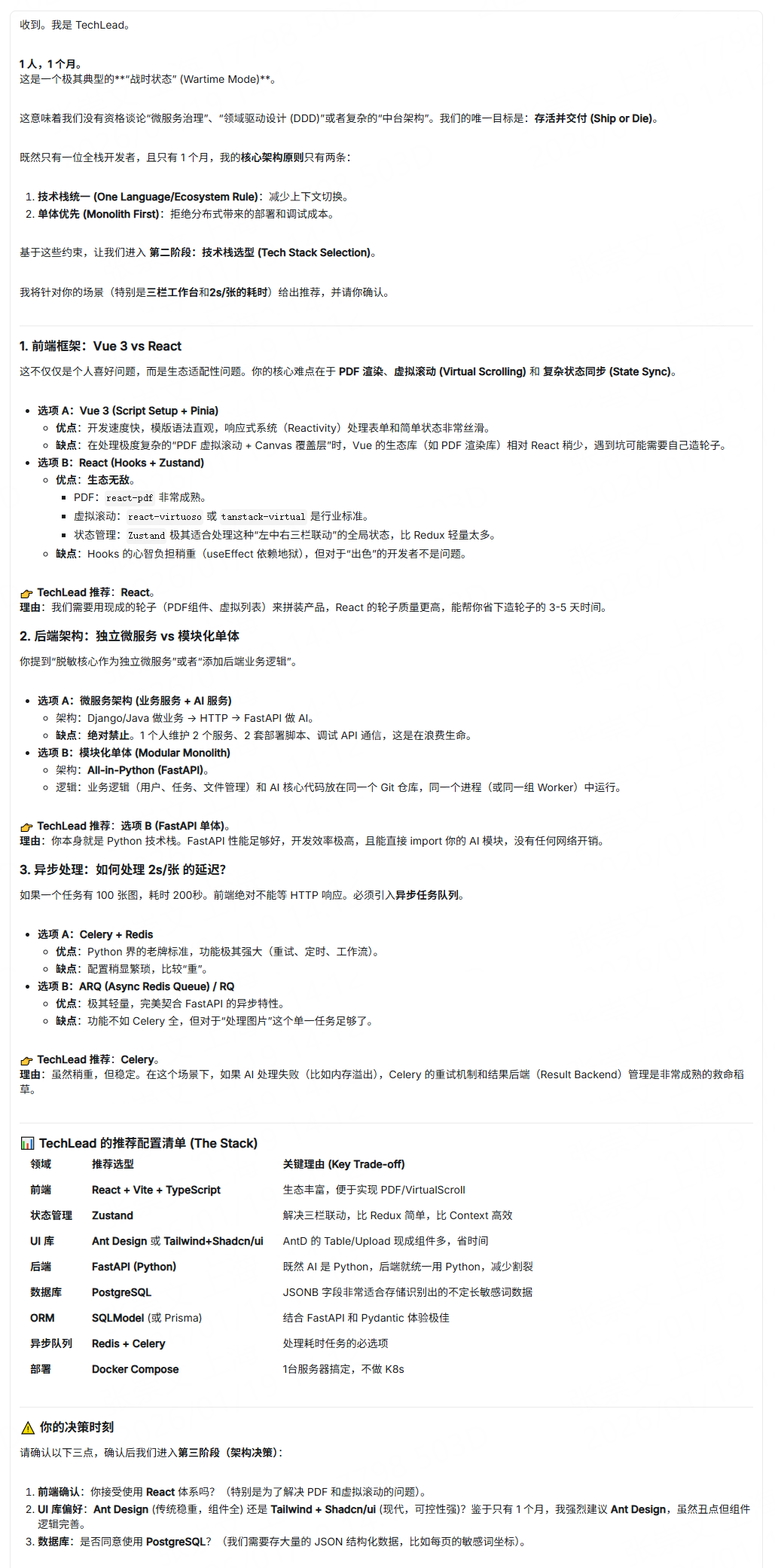 ## 1. 技术栈细化与理由