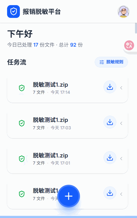 - 上传后动态更新处理进展。