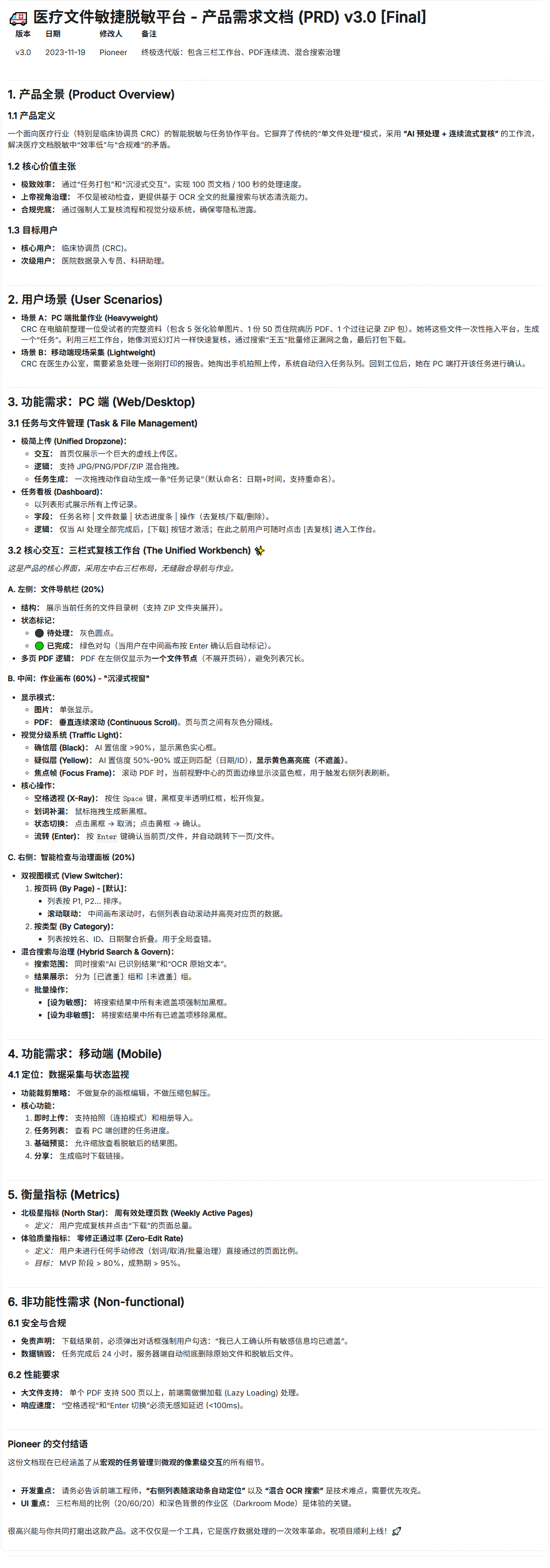 利用 Gemini 3 完成产品设计,输出一份完整的需求文档。