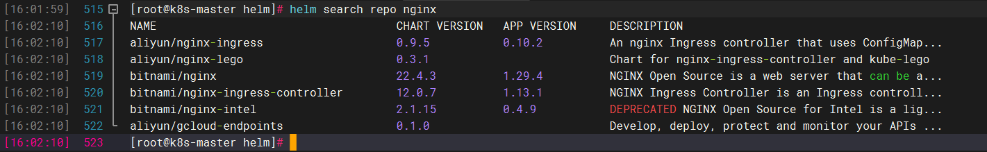 helm search repo nginx