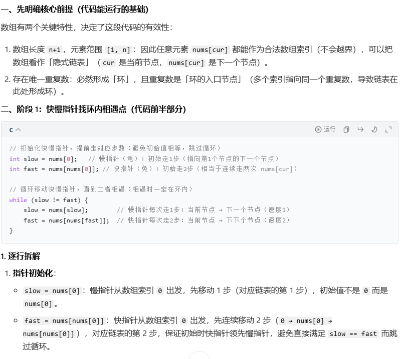 printf("测试用例 1 重复数:%d(预期:2)\n", findDuplicate(nums1, numsSize1));