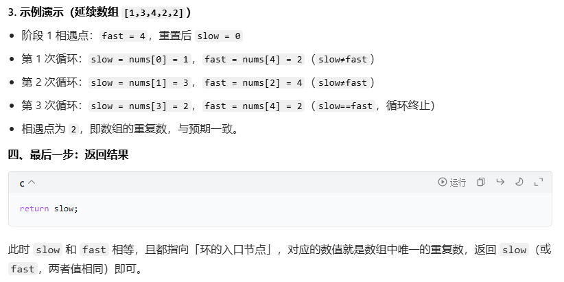printf("测试用例 3 重复数:%d(预期:2)\n", findDuplicate(nums3, numsSize3));
