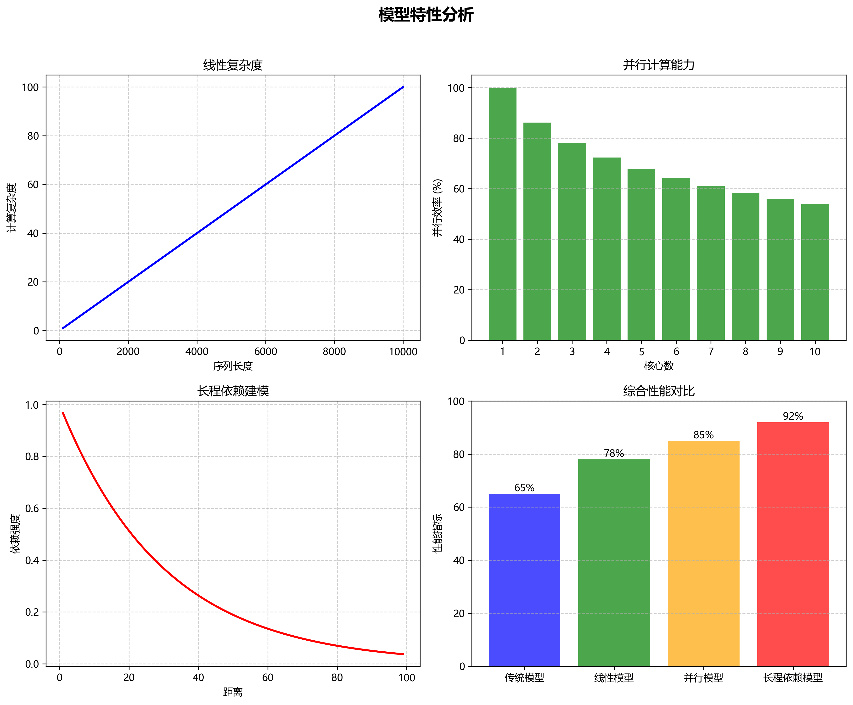 - 线性复杂度:计算复杂度与序列长度呈线性关系,适合处理长序列
