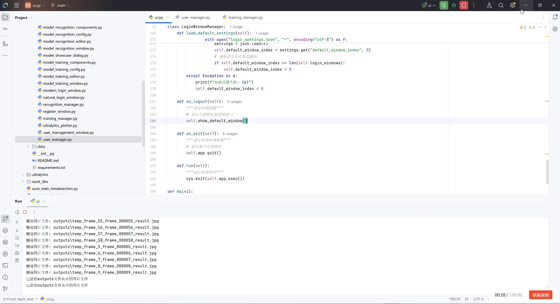 系统实现采用前后端分离架构,前端基于PyQt5开发图形用户界面,后端使用Flask提供API服务。前端界面包括视频流显示、检测结果展示、系统参数配置等功能模块,用户可以通过直观的界面操作,实时查看行李箱检测结果。