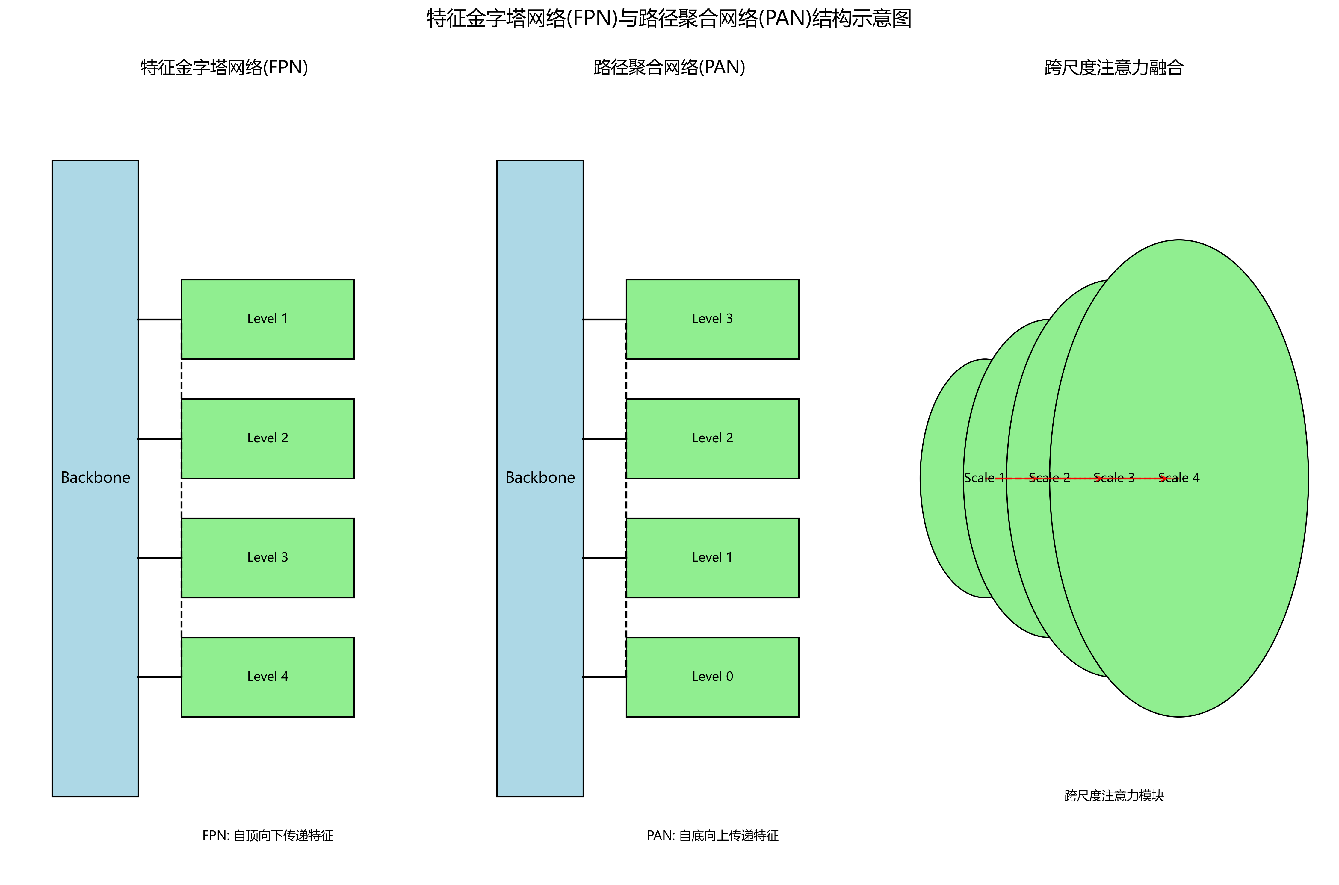 - 特征金字塔网络(FPN):从Backbone提取不同层次的特征,构建特征金字塔