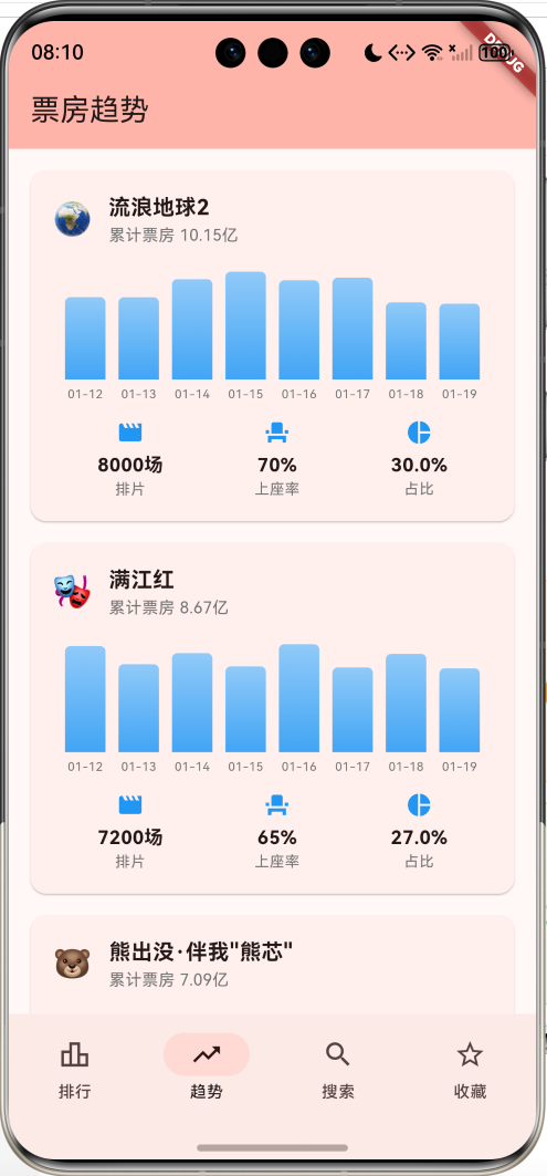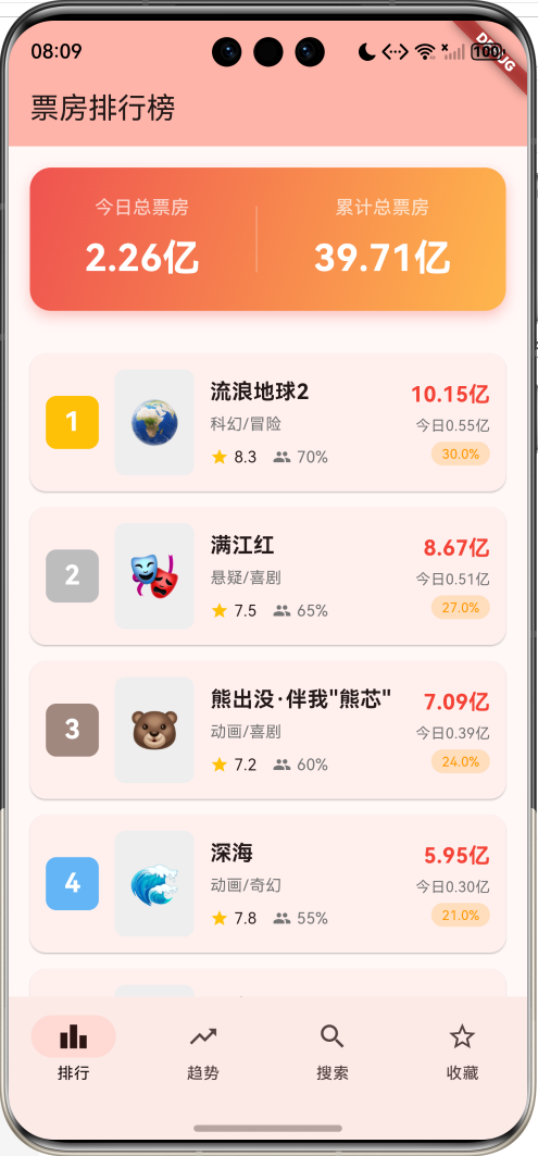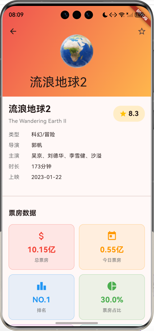 这个电影票房查询应用展示了Flutter在数据可视化和信息展示类应用开发中的强大能力。通过丰富的图表和精美的UI设计,为用户提供了直观的票房数据查询体验。