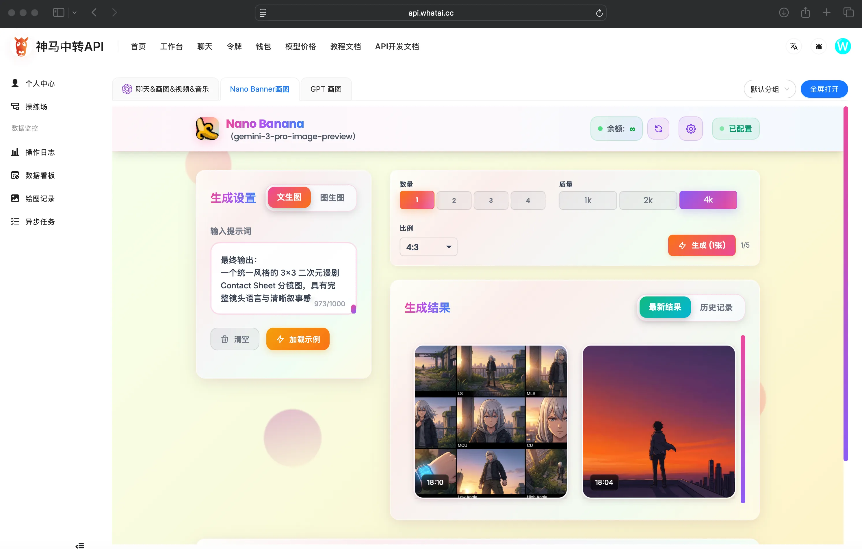👉 你已经拥有导演级分镜,而不是随机画面,下面是使用神马中转API可视化生成AI漫剧: