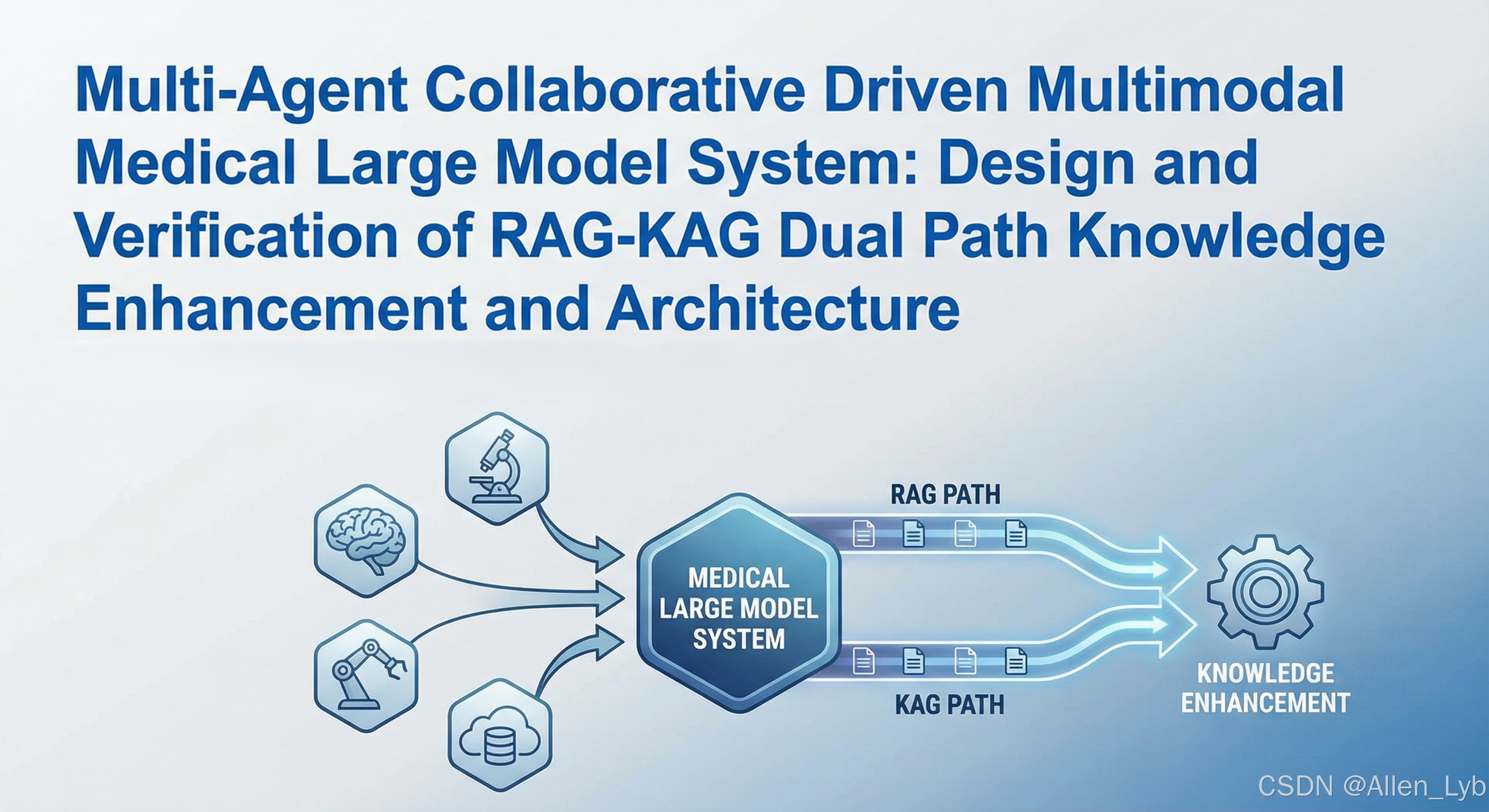本文针对医疗大模型在临床落地中面临的多模态对齐困难、知识更新滞后、生成不可验证以及流程不匹配等核心挑战,提出了一套系统性的解决方案。该方案以多模态自监督预训练构建通用表征能力为基石,创新性地融合了RAG(检索增强生成)与KAG(知识图谱增强生成)双路径知识增强机制,为非结构化证据检索和结构化规则校验提供了统一框架。进一步,通过引入多智能体协作范式,将复杂的临床任务分解为专业化、可审计的工作流。为确保该方案的可生产化,我们设计并详细阐述了覆盖全生命周期的八层系统架构,从治理合规、数据感知直至观测反馈与持续更新。