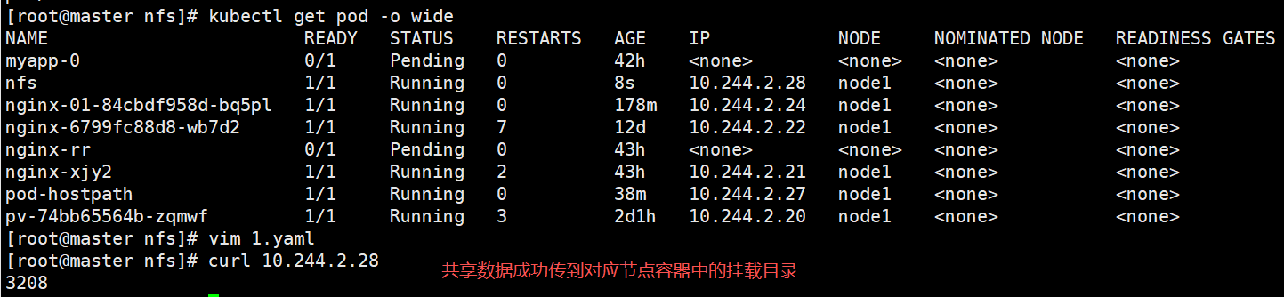 原理:通过rpcbind和nfs服务将客户端的数据传到对应的node节点。