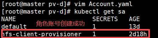 大致原理:由于k8s本身支持的动态pv不包括nfs,所以需要外部插件,外部卷插件称为 Provisioner(存储分配器),而外部插件进入集群需要有账号与角色权限去创建pv,整个存储流程就是先创建k8s集群账号和角色,然后让角色与账号互相绑定,之后创建nfs插件,让他分配pv,pv在整个过程中会自动创建,因为外部网络插件不能直接由pvc调用,所以还需要创建stroageclass去调用外部存储插件,pvc在去调用storageclass,最后创建pod,这是操作流程,实际上的存储流程是反过来的。
