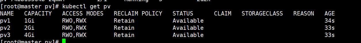 Available(可用):表示可用状态,还未被任何 PVC 绑定