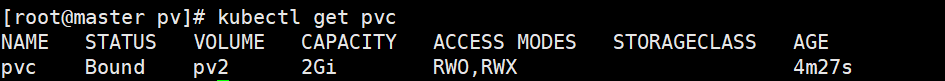 因为这里pv2的资源和pvc所需标准一样,所以会绑定到pv2