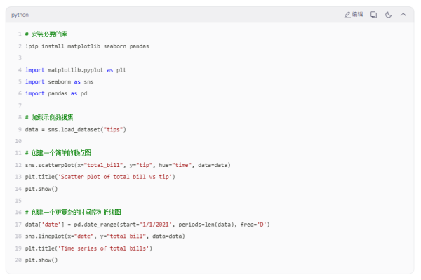 - Python(Matplotlib, Seaborn, Plotly):对于喜欢编程的人来说,Python及其相关的库提供了高度定制化的解决方案。Matplotlib是基础绘图库,Seaborn基于Matplotlib但更加简洁易用,Plotly则擅长于交互式图表。