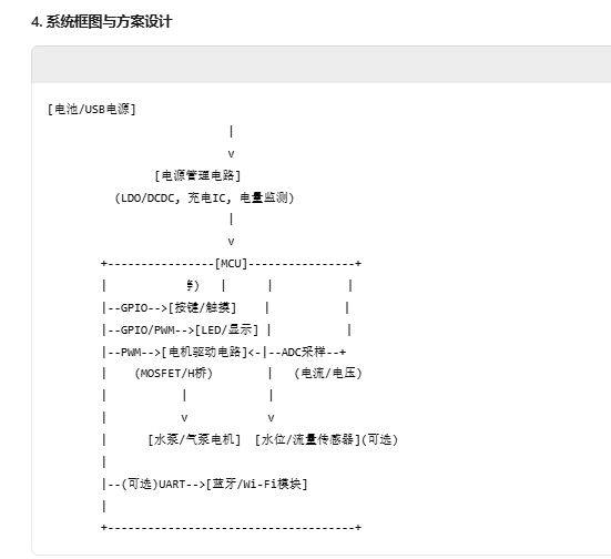 安全保护:电机堵转/过流保护、干烧保护(检测水位或流量)、温度保护(可选)。