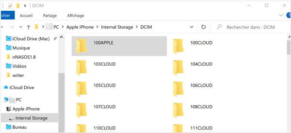 步骤 3. 进入"DCIM"文件夹,找到包含视频的文件夹(通常命名为类似"100APPLE"的名称)。