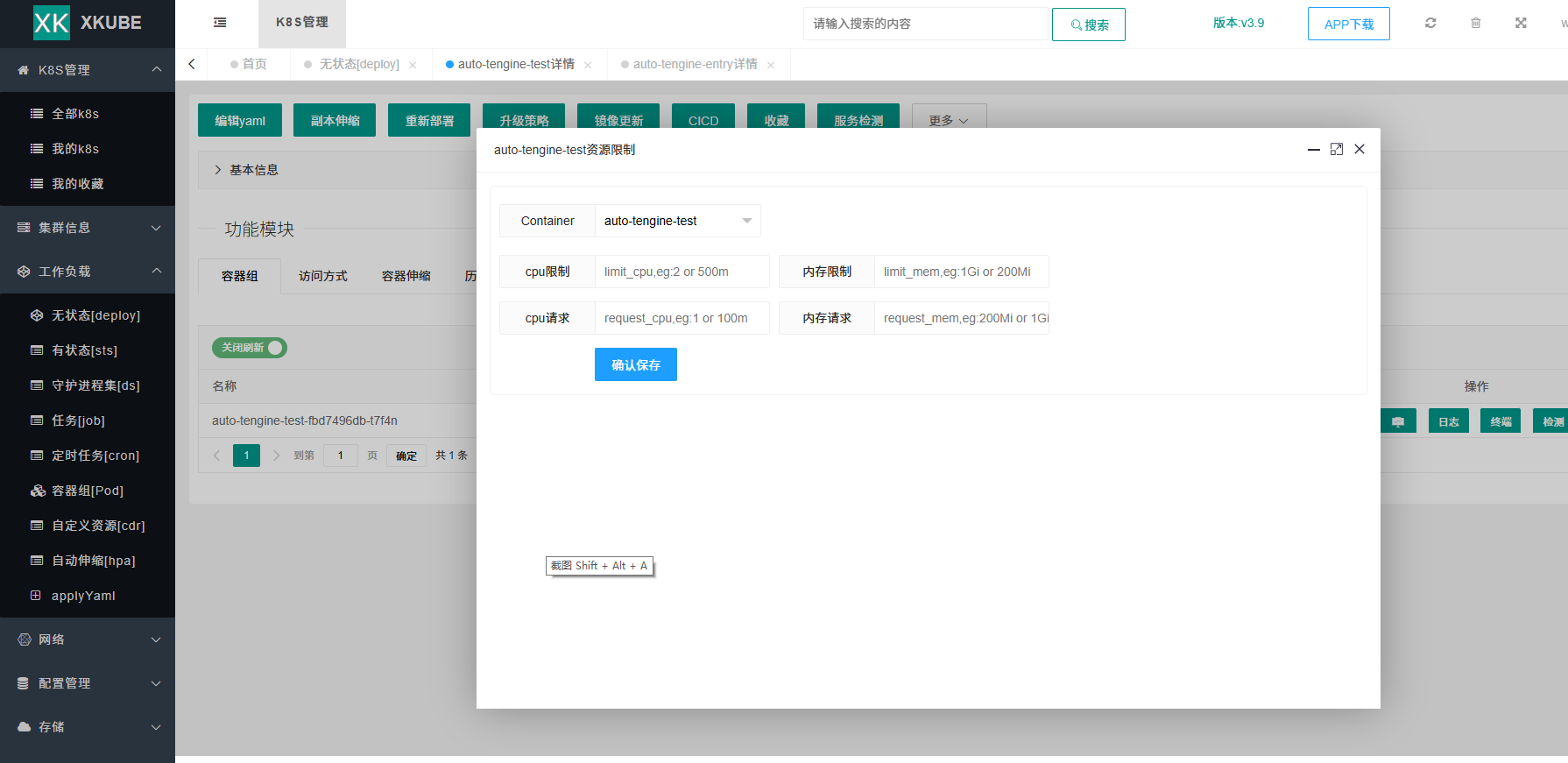 通过多集群k8s管理平台xkube的功能可以轻松的进行资源限制,xkube安装部署参考:https://blog.csdn.net/weixin_56364253/article/details/156390146