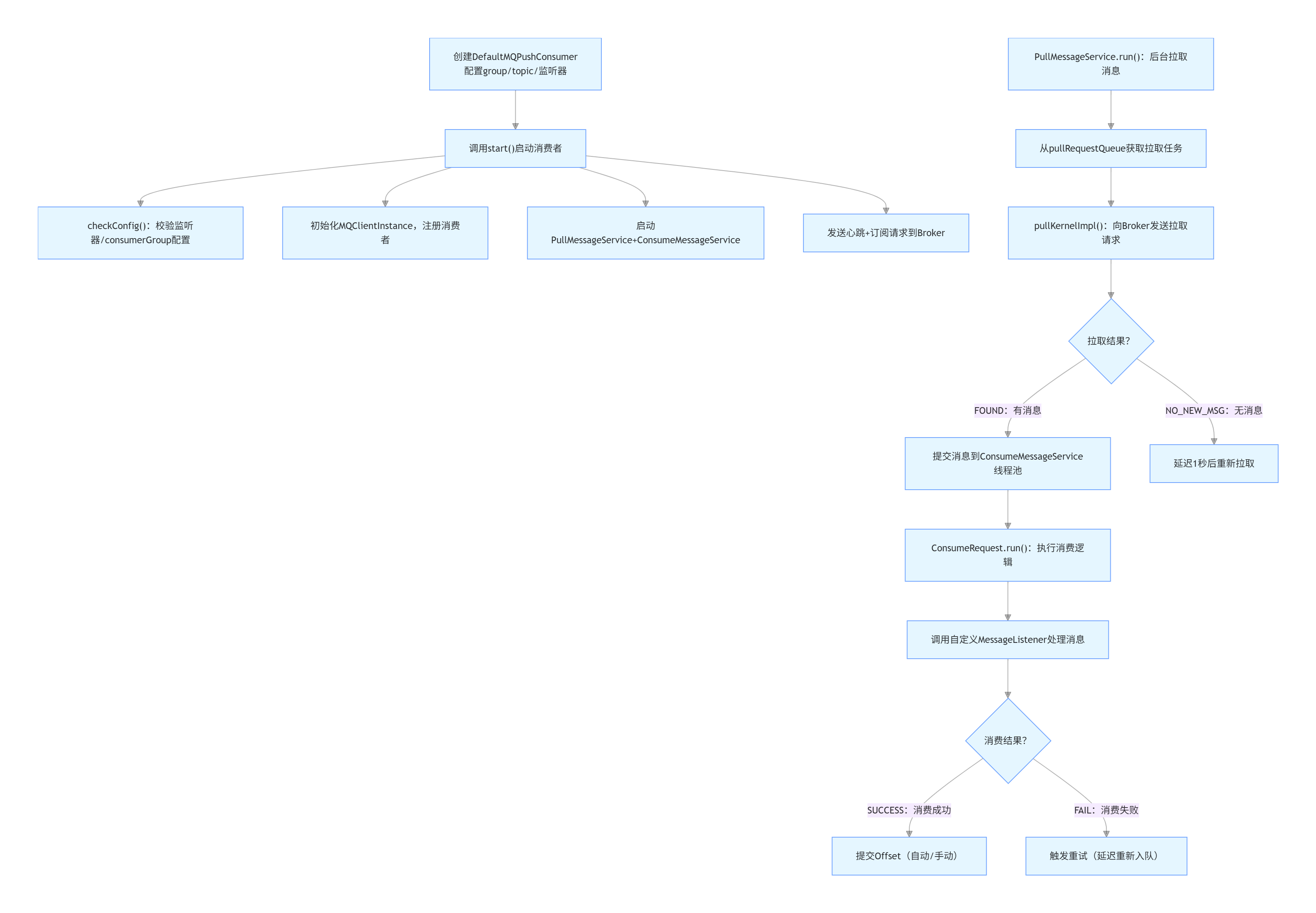 // 1. 消费者启动核心(DefaultMQPushConsumerImpl.start())