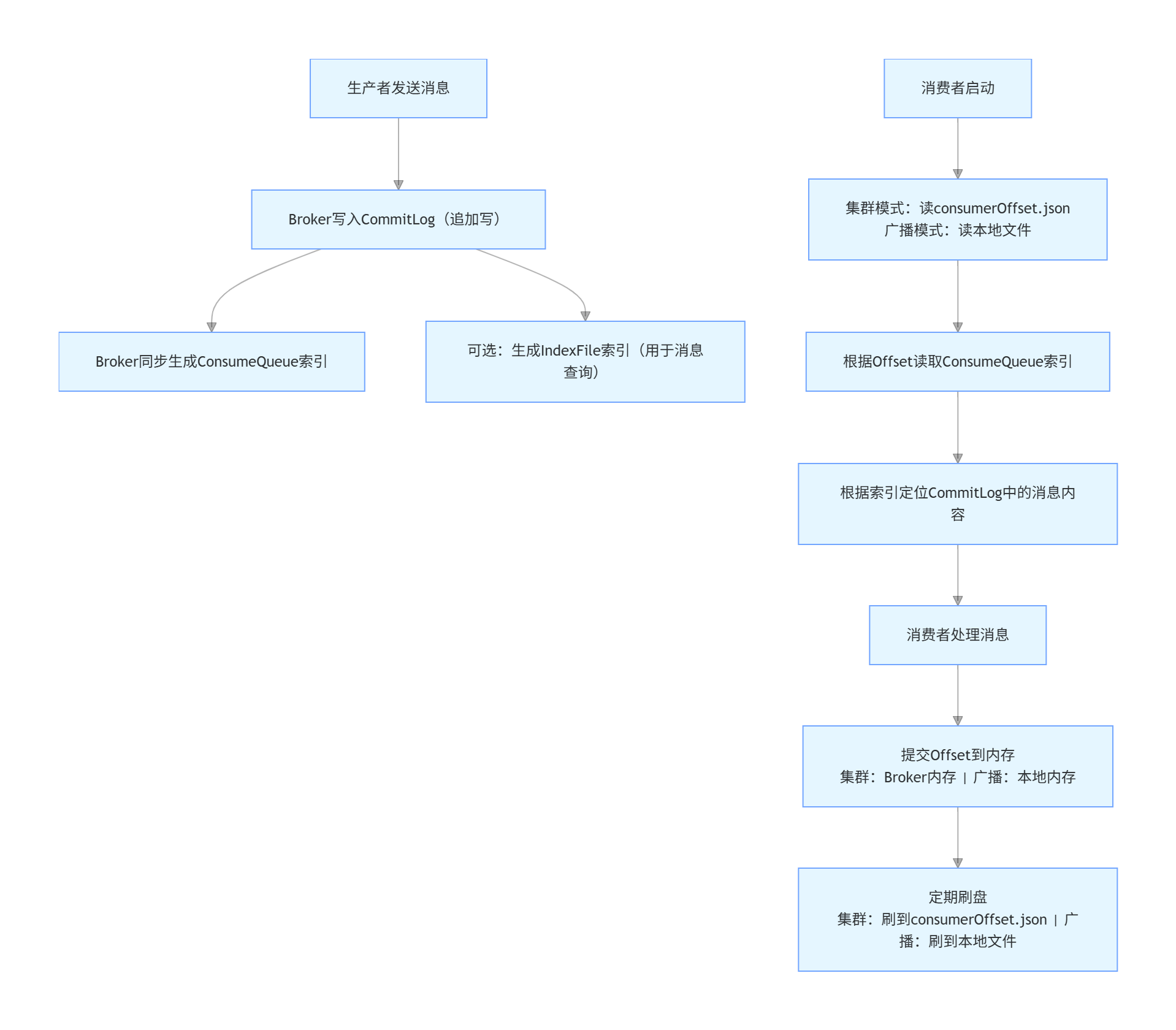 | Offset 存储 | Broker 端 consumerOffset.json(易恢复) | 本地文件~/.rocketmq_offsets/(易丢失) |