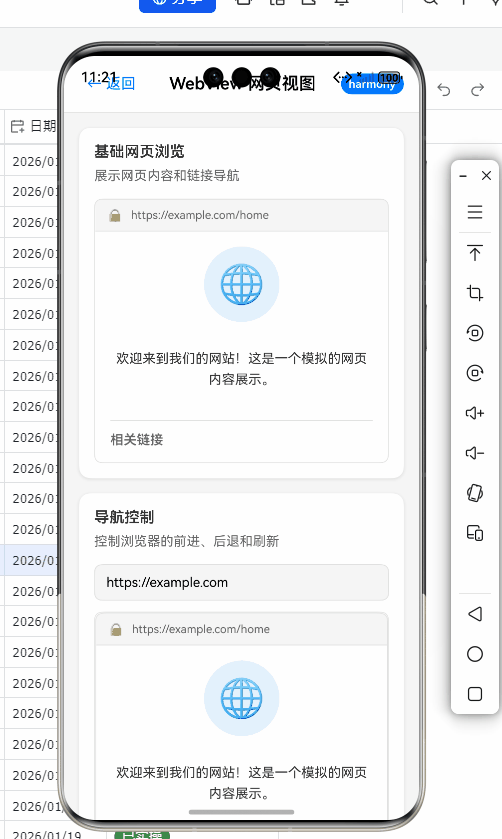- 底层引擎:OpenHarmony 通常使用基于 Chromium 内核的 Web 组件,这保证了与现代 Web 标准的良好兼容性。