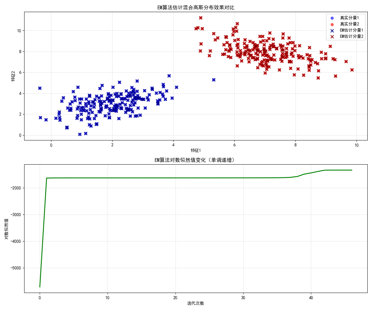 - 扩展 EM 算法代码,实现 3 个高斯分量的混合模型估计。