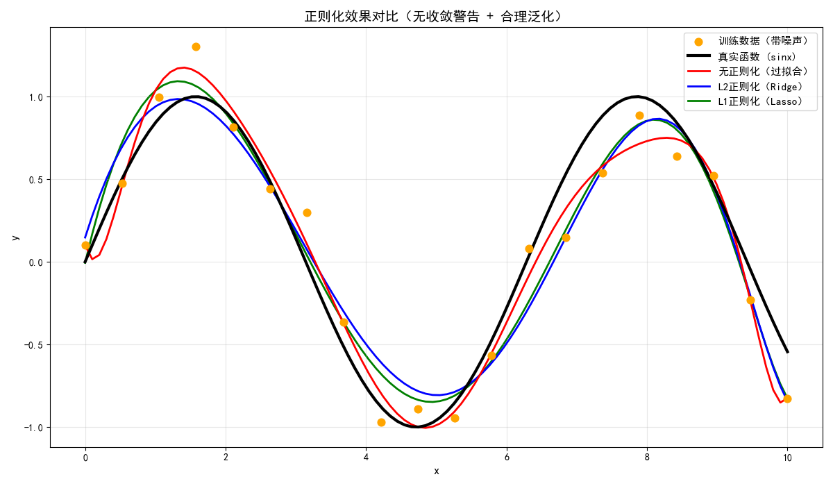 y_noise = y_true + np.random.normal(0, 1.5, size=len(x)) # 加入高斯噪声