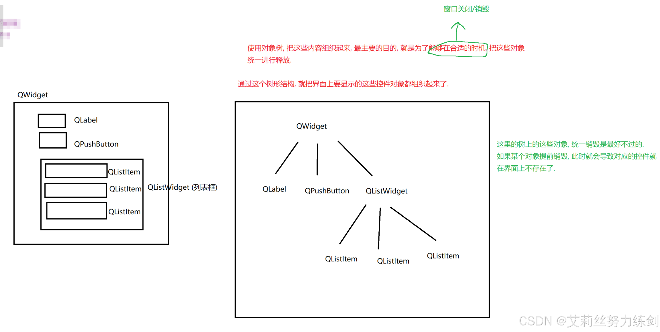 简而言之,Qt 的对象树让你在创建对象时指定一个 "爹"(parent) 。当你删掉这个"爹"时,它所有的 "儿子们"(children) 都会被自动清理掉,省心又安全。