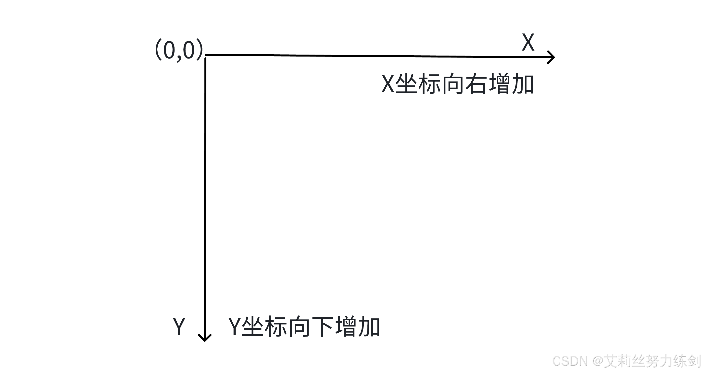 坐标体系:以左上角为原点(0,0),X向右增加,Y向下增加。