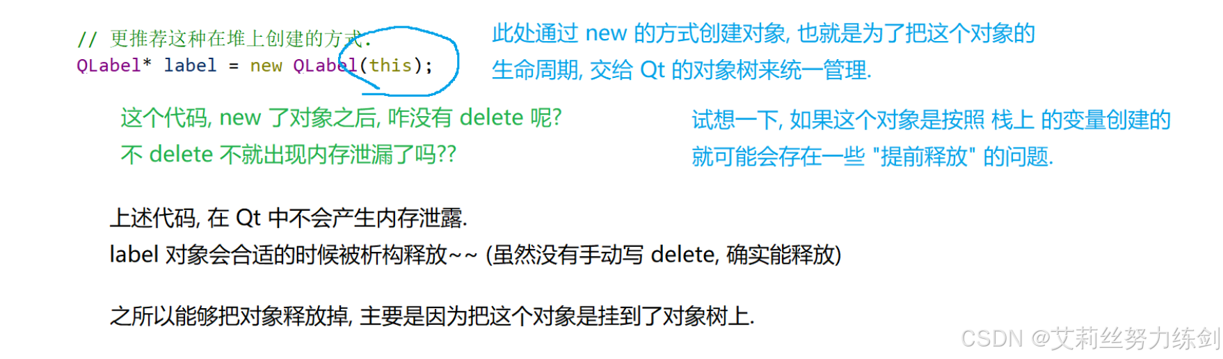 new在堆(heap) 上创建,并由 Qt 对象树统一管理生命周期。只需保证父对象被正确删除,其所有子对象便会自动安全释放。