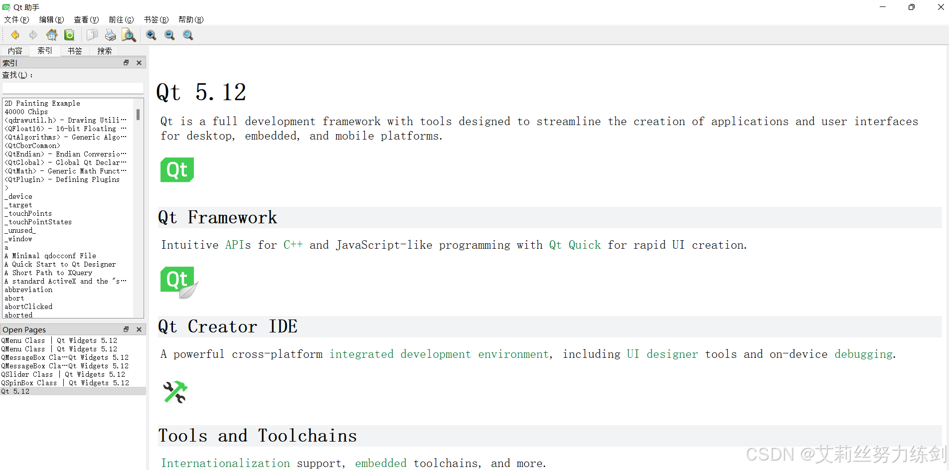 不要使用中文文档!阅读英文文档是每个程序员必备的专业技能,必须要练,不能退缩,Qt的文档从通俗易懂的角度来说,是技术类文档中非常出类拔萃的,只要大家稍微有点耐心,基本都能读懂个八九不离十。