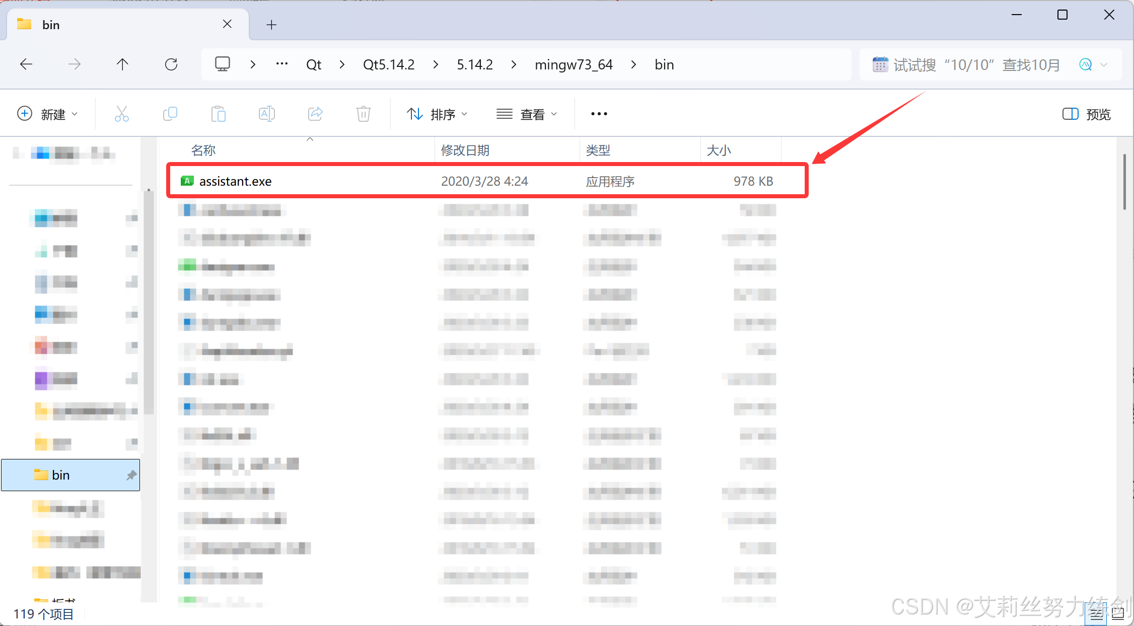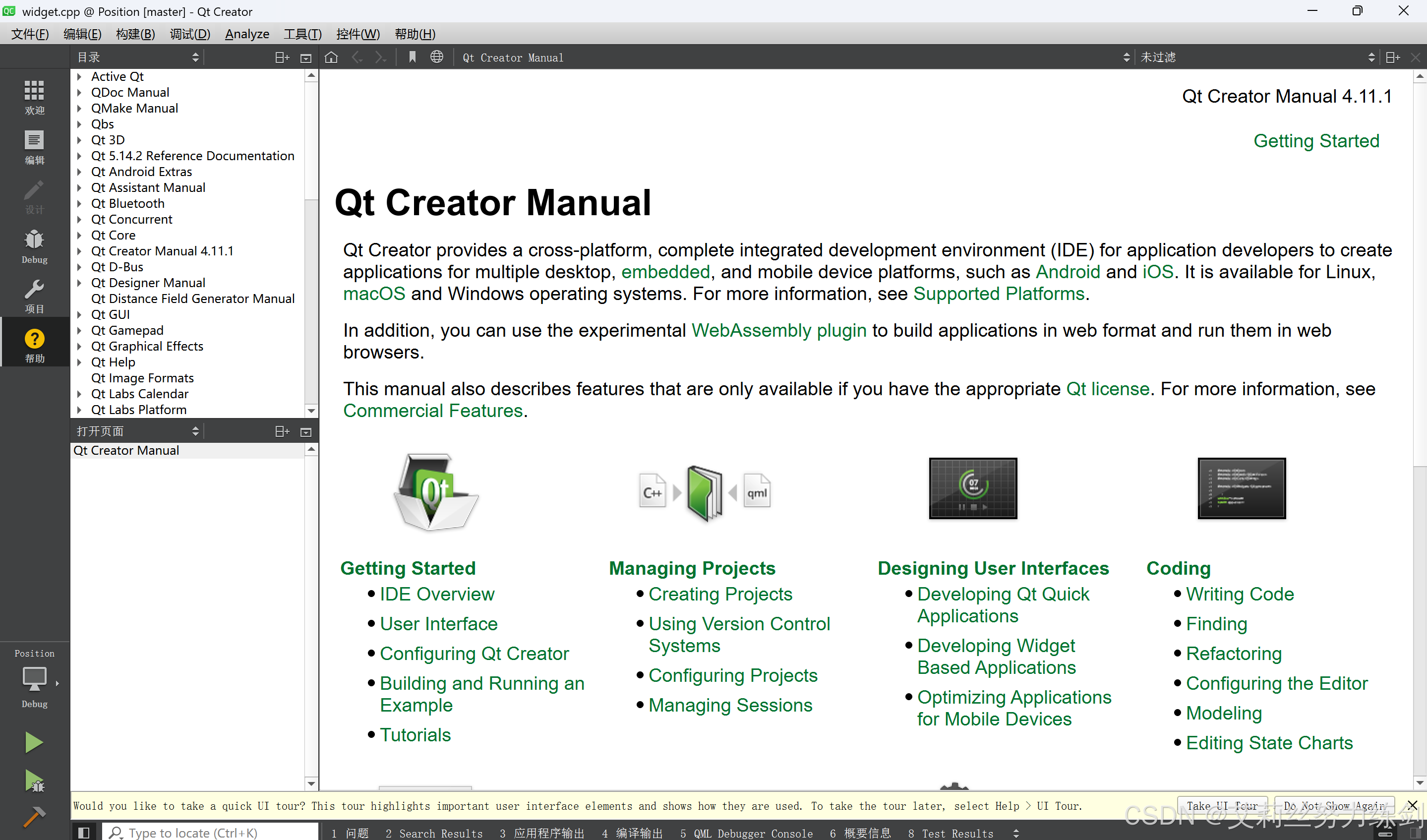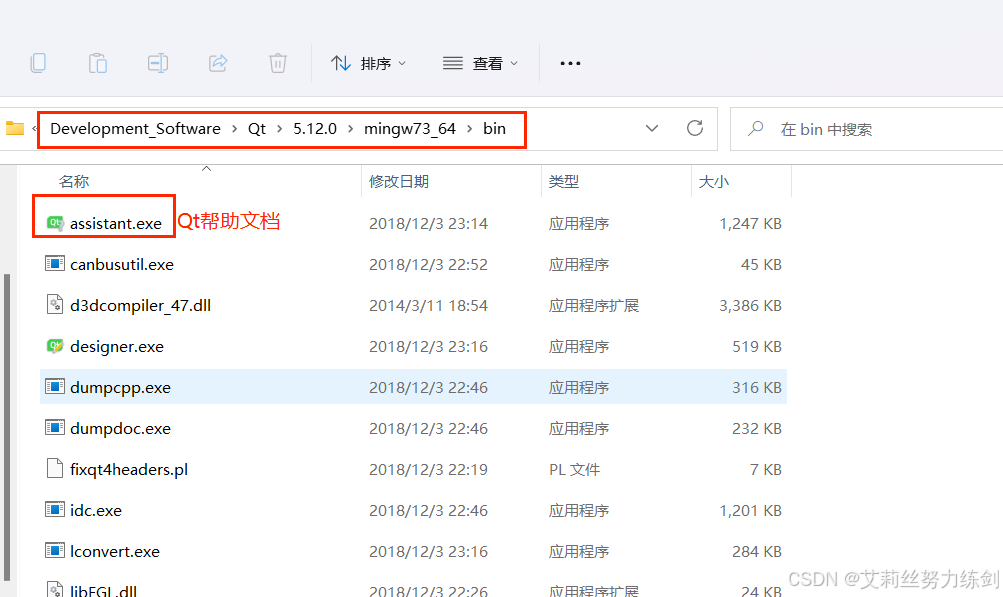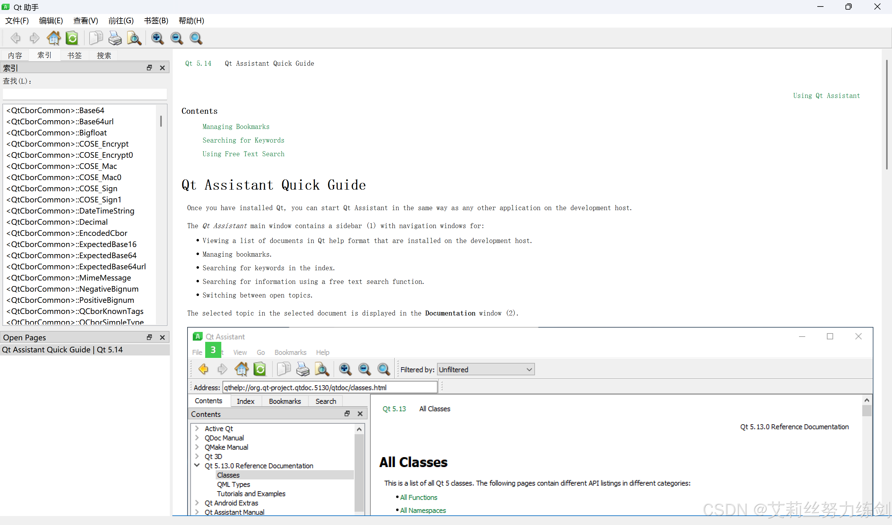 Qt Creator的安装路径,在"bin"目录下找到assistant.exe这个程序,双击打开: