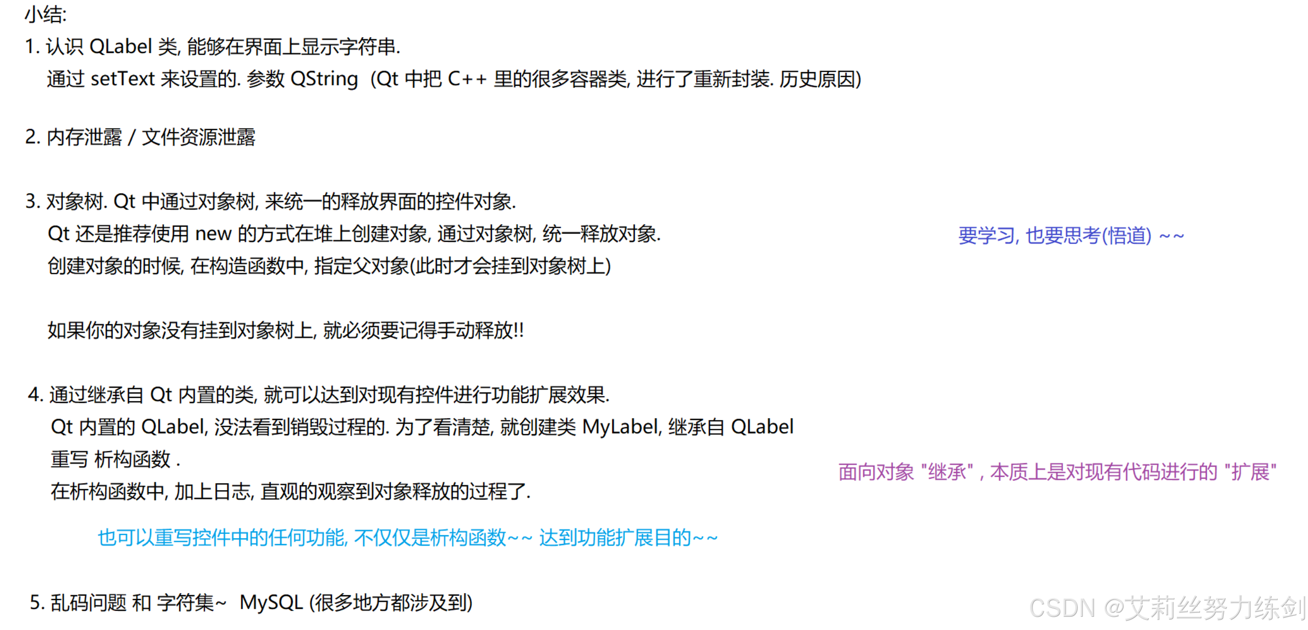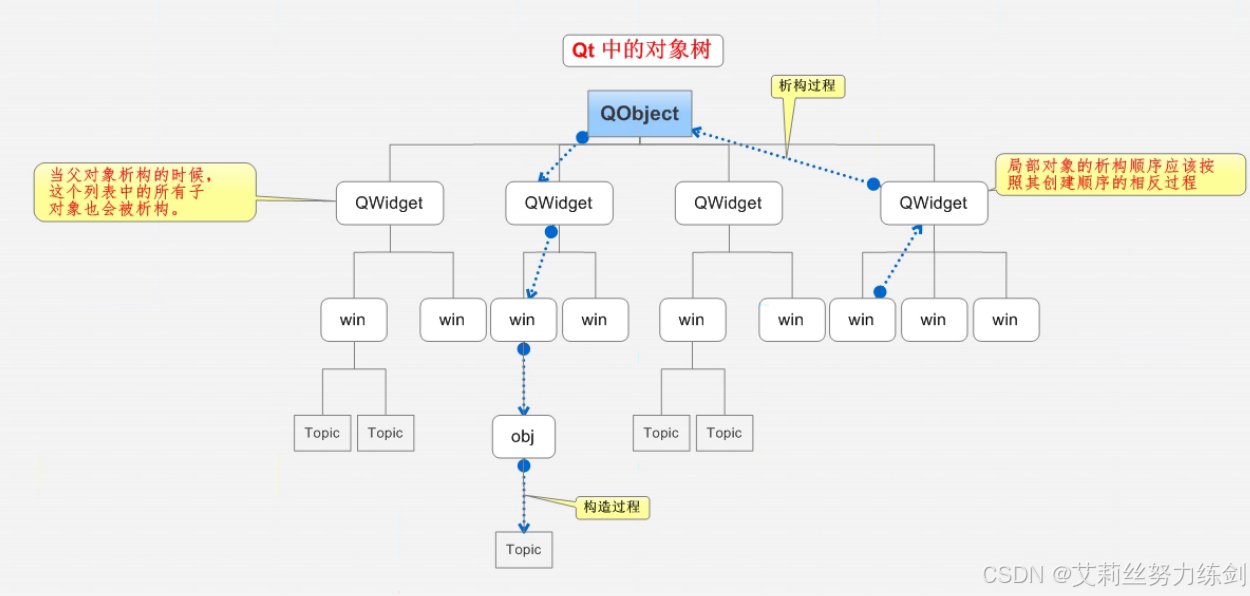 一句话总结:在对象树中,虽然内存释放总是从子节点到父节点,但析构函数的调用顺序可能与内存释放顺序不同,二者是分离的操作。