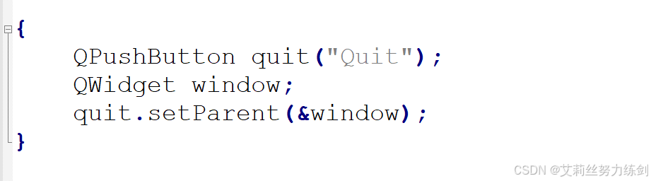 父对象 (window) 的创建晚于 子对象 (quit)。 即:先创建 quit,后创建 window 并(通过 setParent 或后续构造)成为 quit 的父对象。 |