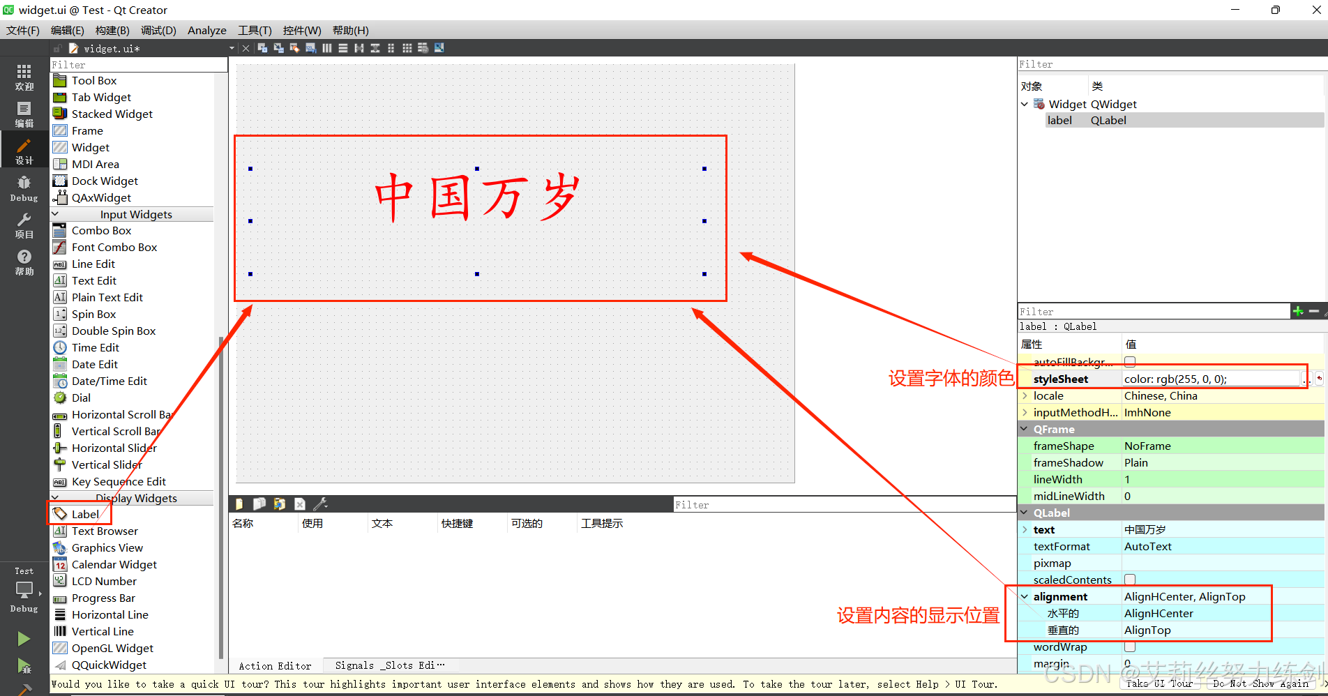 (2)拖拽"标签"至UI设计界面中,并双击修改标签内容;