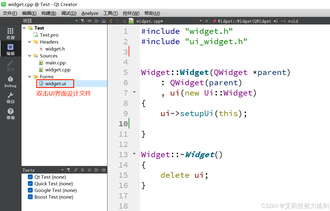 - 2、Qt Creator左侧边栏中直接用鼠标单击
