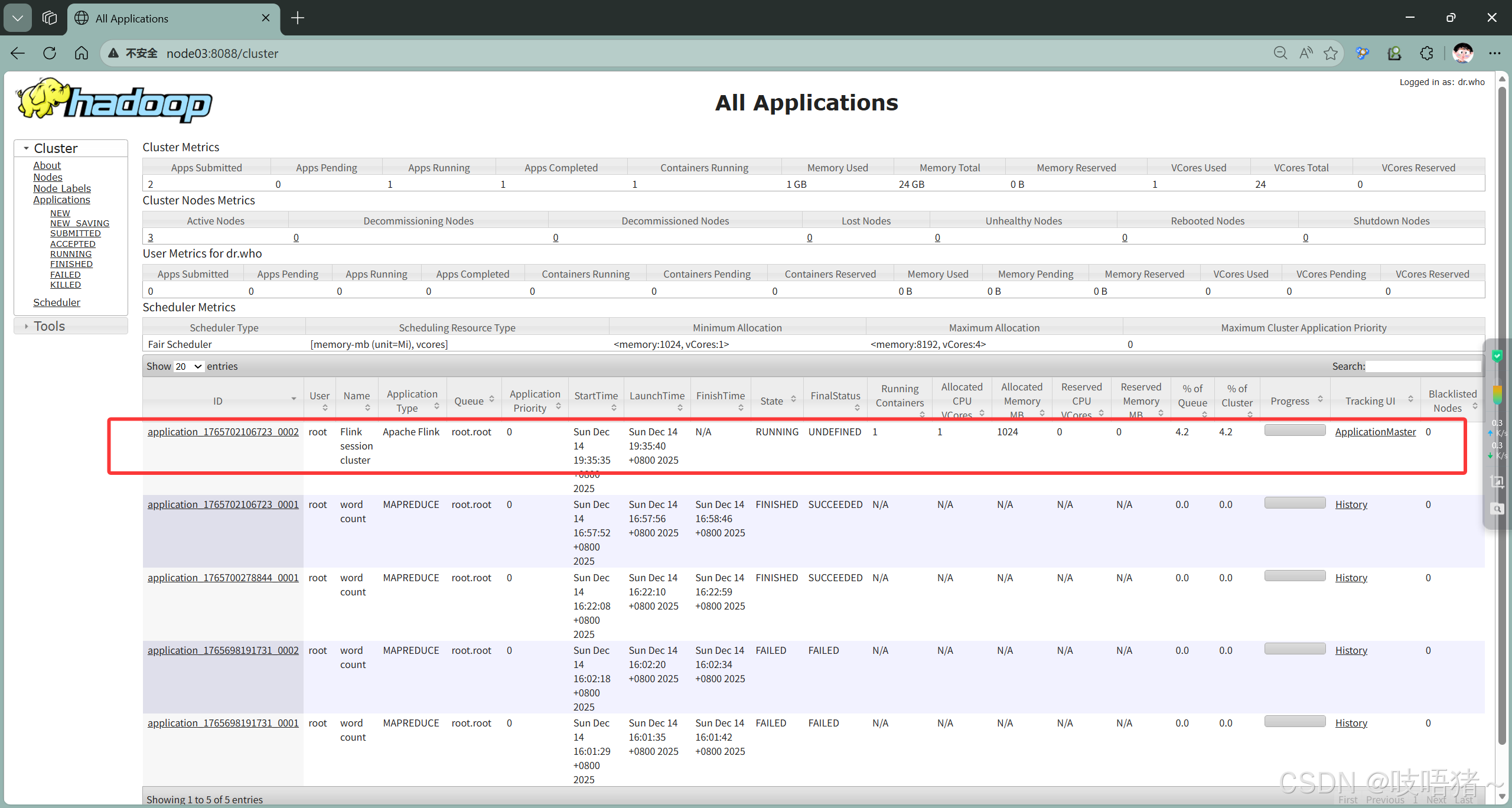 # 首先找到刚刚启动的session,获取YARN应用ID