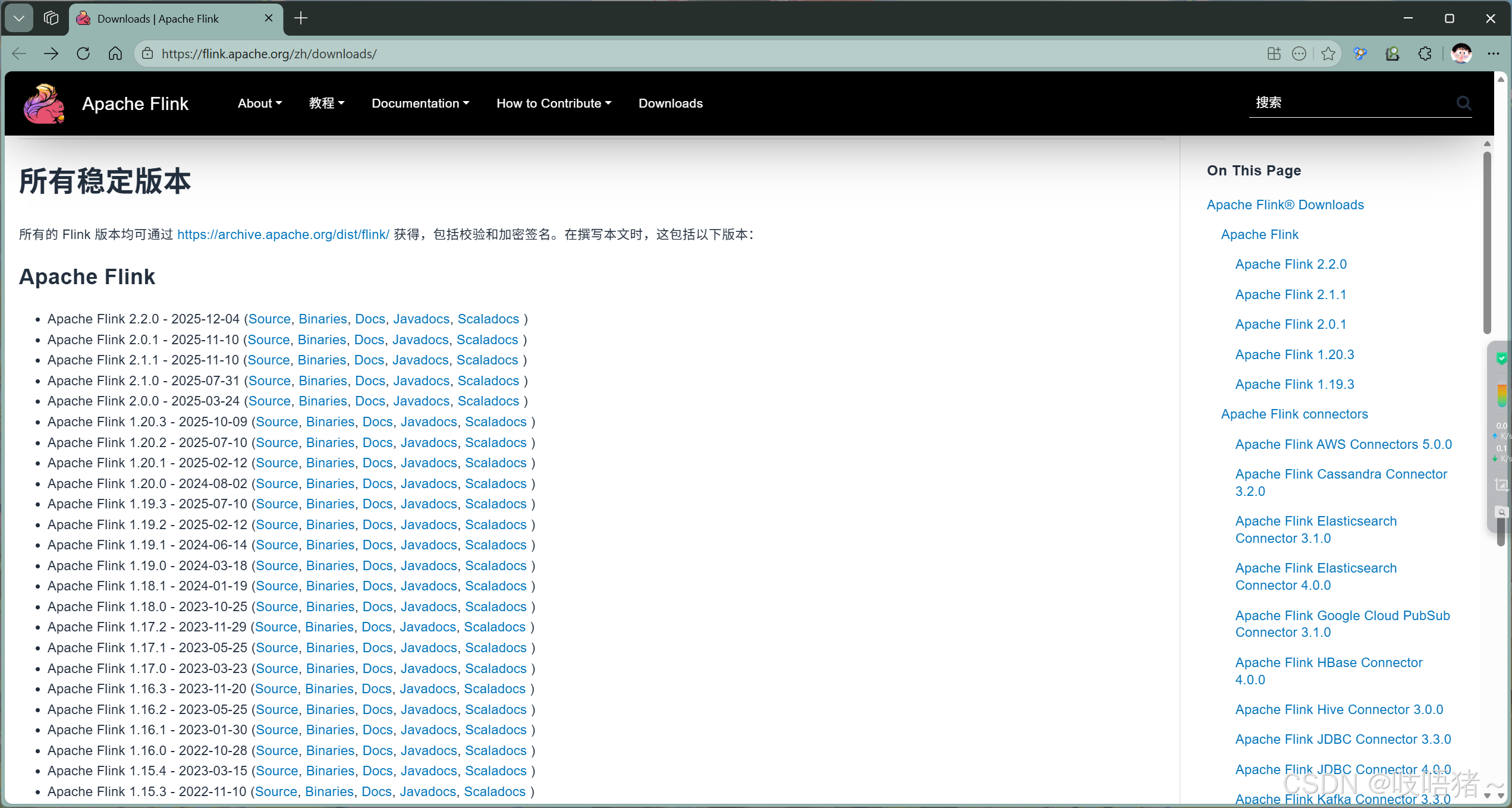 官方文档:Downloads | Apache Flink 一直拉倒最后就会显示所有历史版本