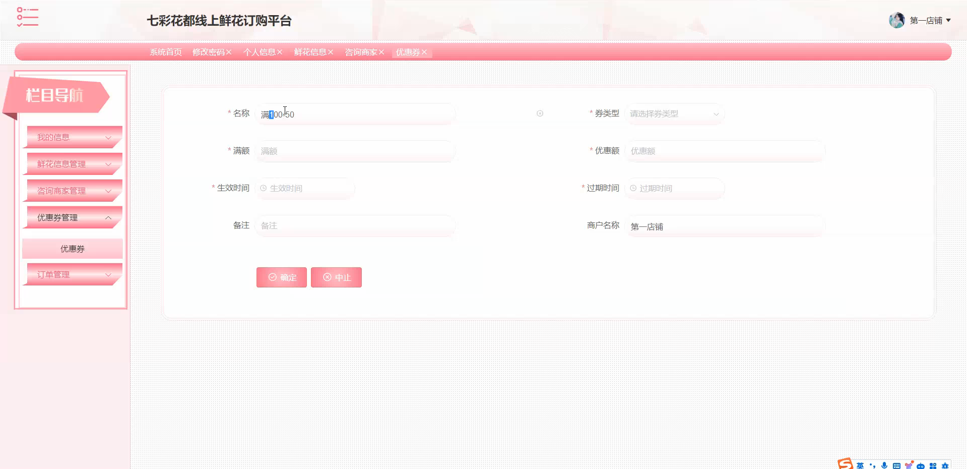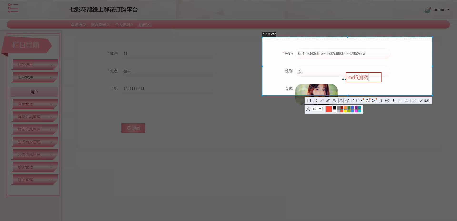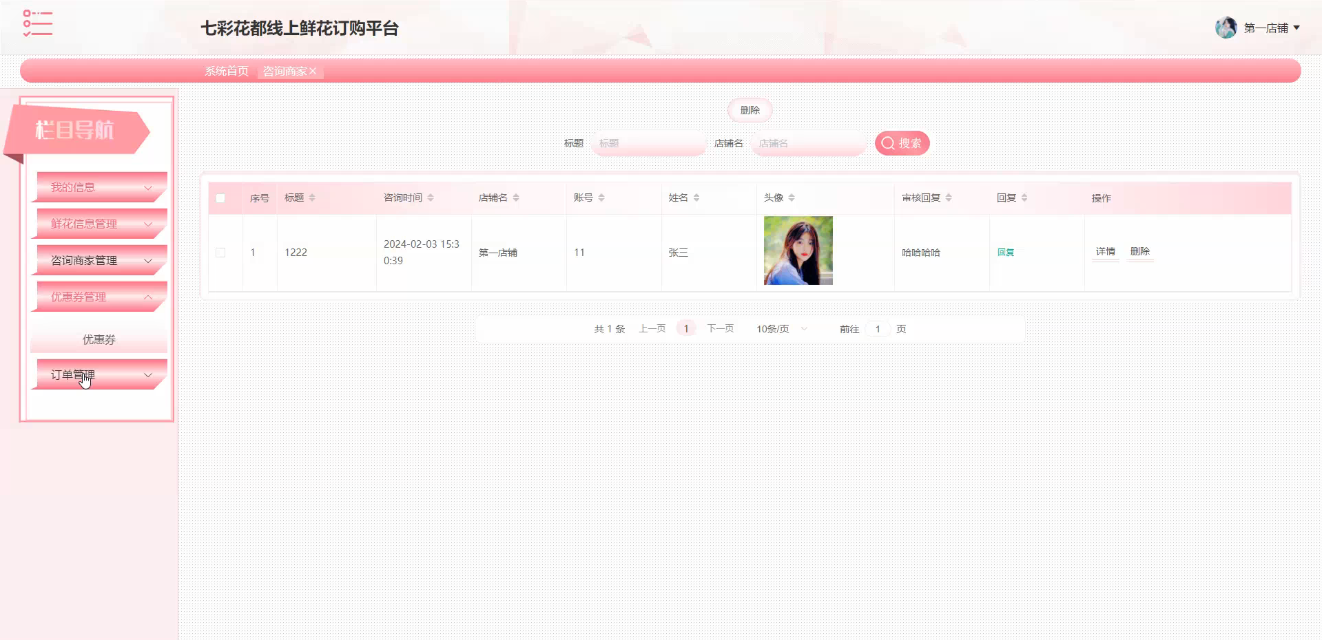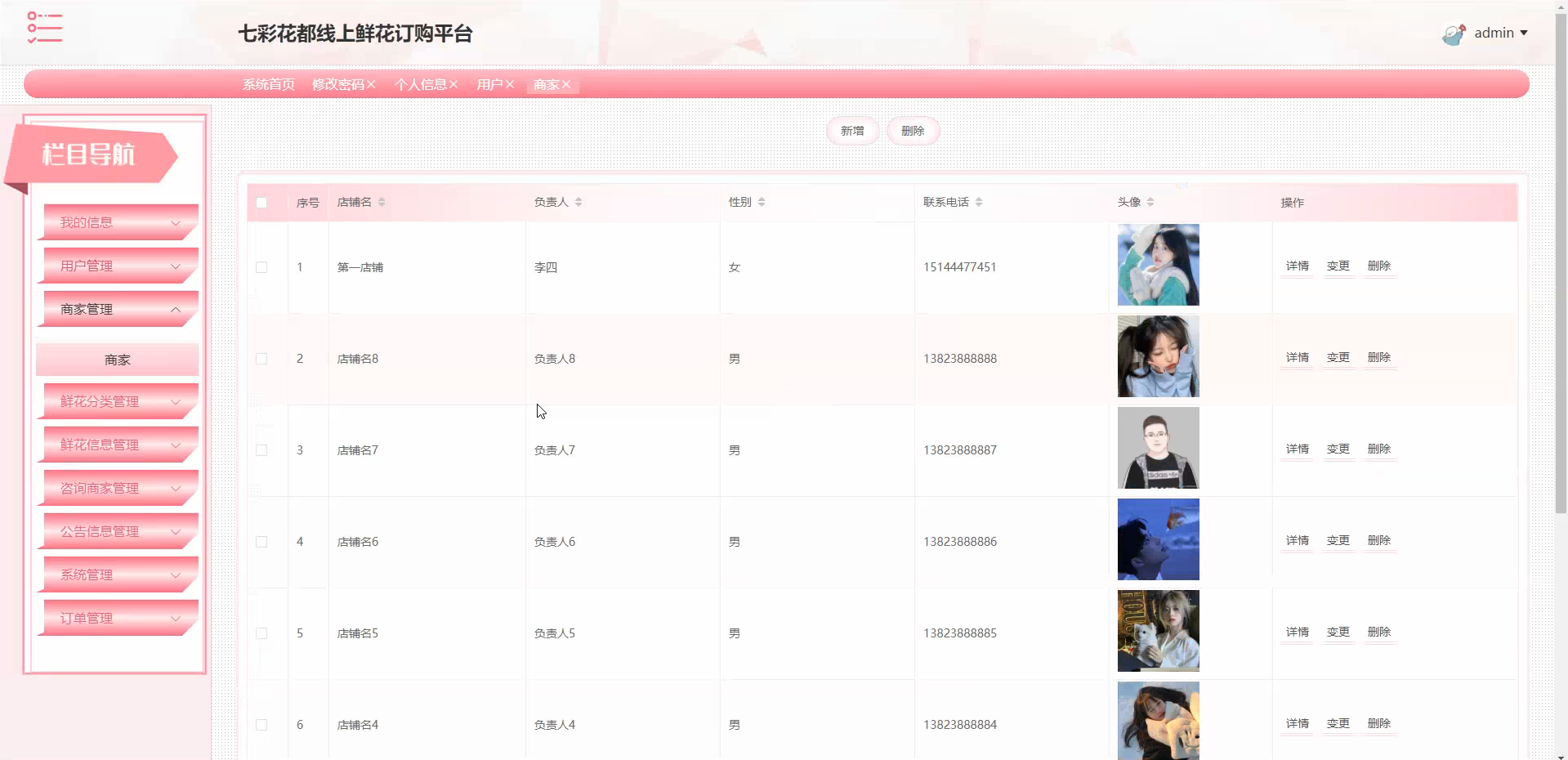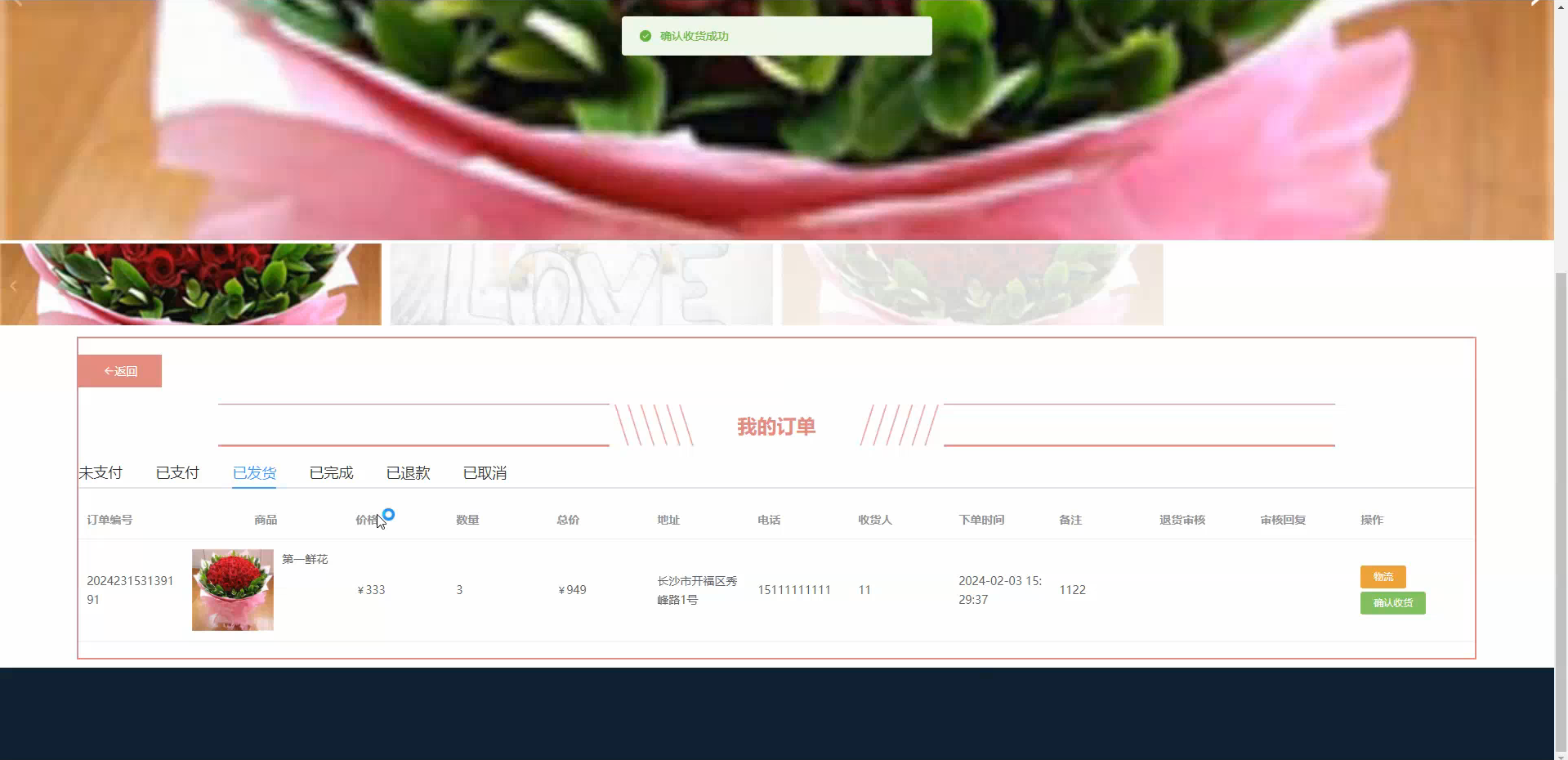 - 鲜花信息管理:支持鲜花的添加、修改、删除及上下架操作,记录鲜花名称、价格、库存、描述等信息,确保鲜花信息的准确性和及时性。
