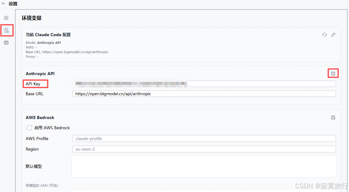 { "name": "ANTHROPIC_BASE_URL", "value": "https://open.bigmodel.cn/api/anthropic" }, { "name": "ANTHROPIC_AUTH_TOKEN", "value": "你的 api-key" } ],