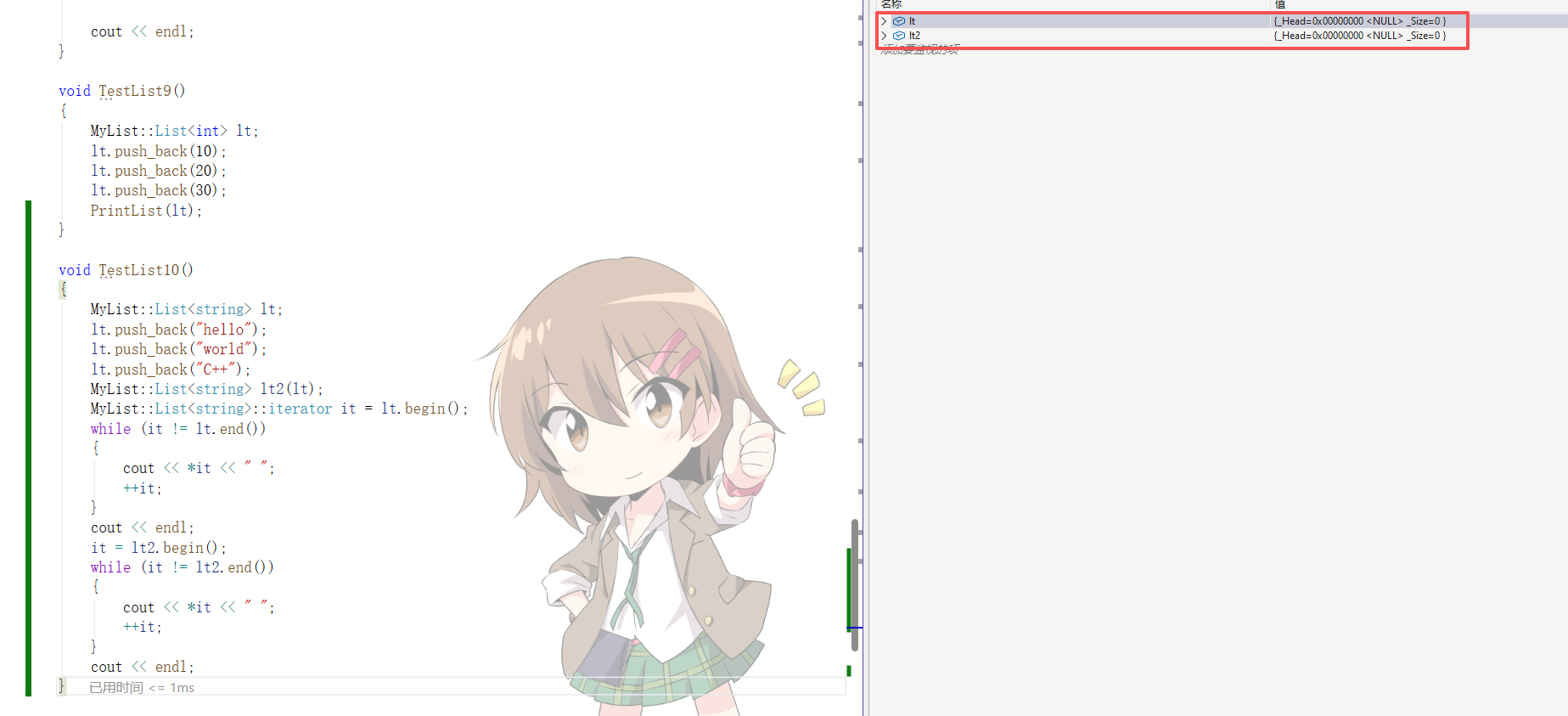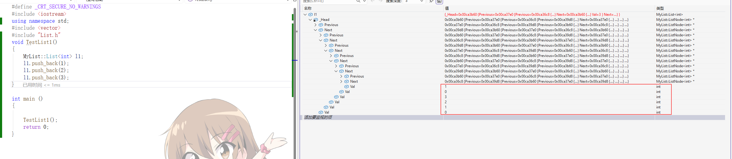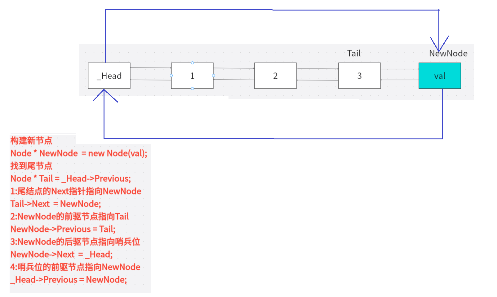 - list是一个带头双向循环链表,在构造一个list对象时,直接申请一个头结点,并让其前驱指针和后继指针都指向自己即可。