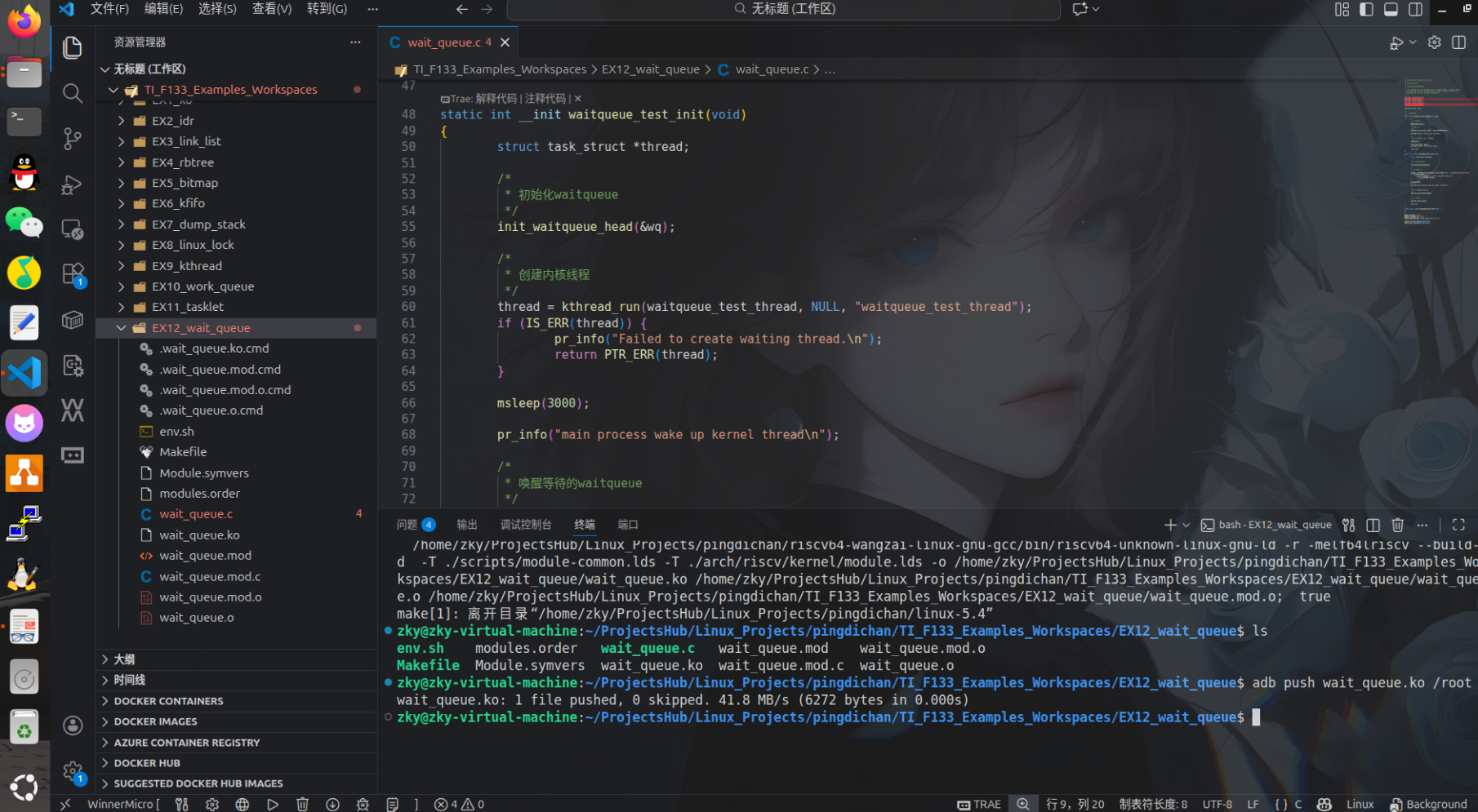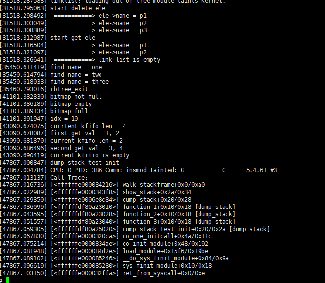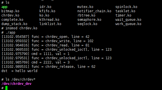 (4)如果只想使用adb口,在adb shell进入后安装ko文件后使用dmesg可查看打印信息。
