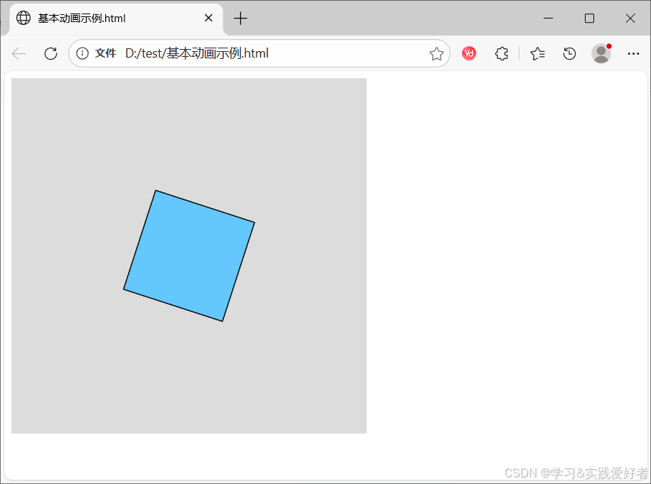 • shearY(angle) :图形的水平边(X 轴方向) 向上下倾斜,垂直边保持垂直;正数值→向下倾斜,负数值→向上倾斜;