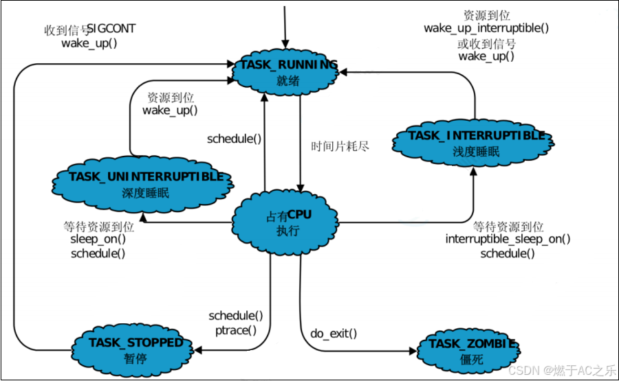 在linux内核里,进程有时候也叫任务,一个进程可以有几个状态: