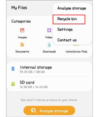 步骤 2. 点击右上角的三点菜单图标,然后选择"回收站"(或"垃圾箱",具体取决于您的系统版本)。