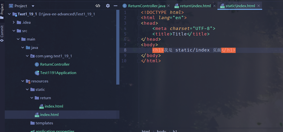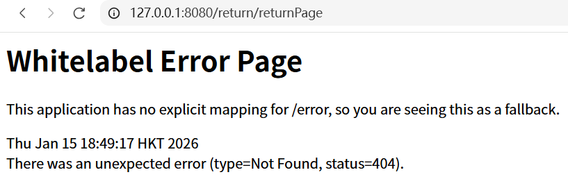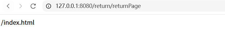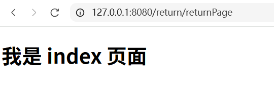如果 "index.html" 前面没有 "/",就默认的请求路径是 "return/index.html";如果 "index.html" 前面有 "/",就默认的请求路径是 "/index.html",我们还可以把浏览器请求路径的"/return/returnPage"省略掉,直接写"http://127.0.0.1:8080/"。