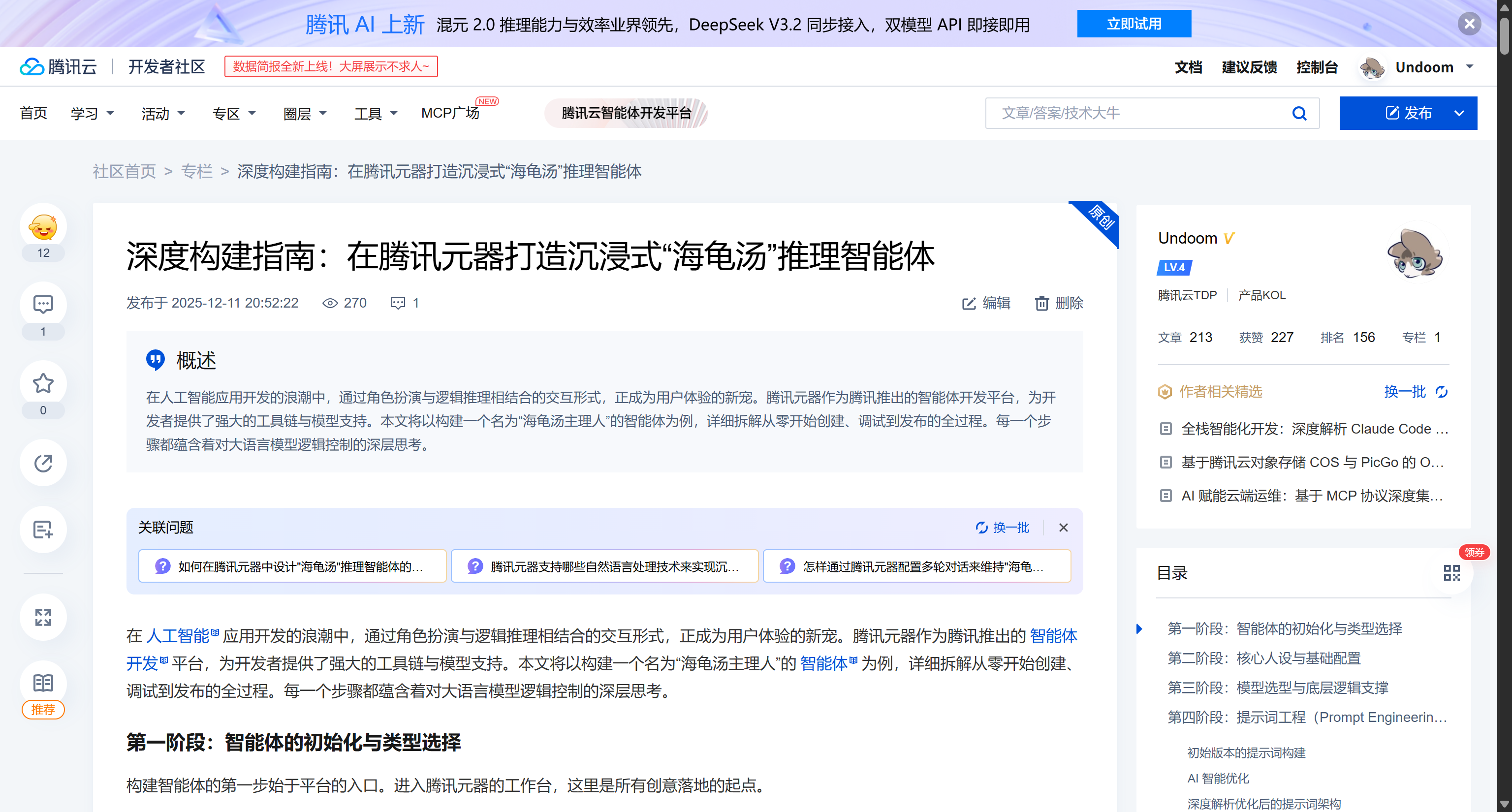 年末,腾讯元器(Yuanqi)平台的推出标志着智能体开发的普及化。在该平台上,开发了一款沉浸式的"海龟汤"推理智能体。