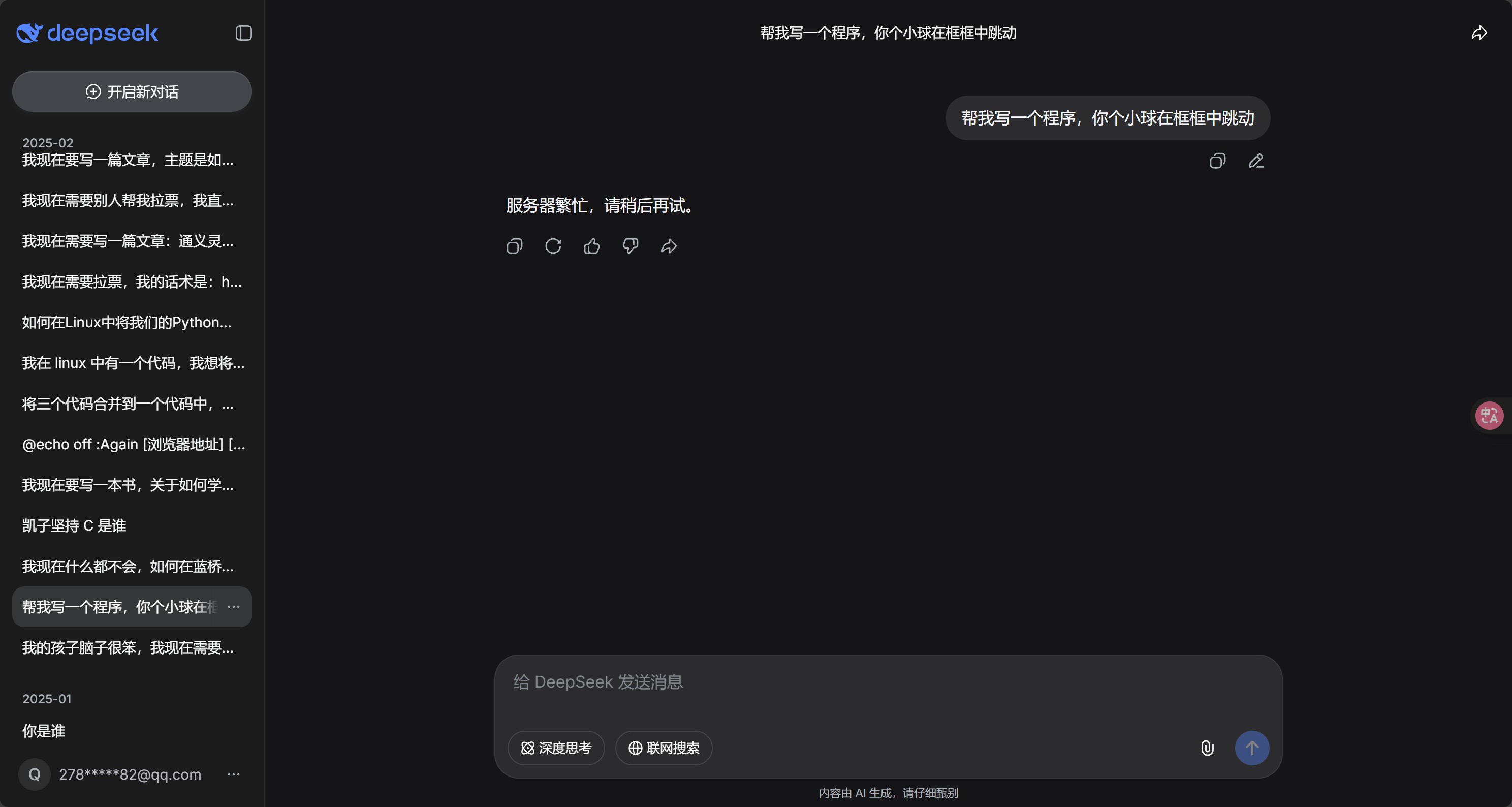 在本地终端的黑色背景与白色字符之间,第一次与 DeepSeek 的对话标志着个人开发模式的转变。此时的模型已经具备了极强的逻辑推理能力,能够理解复杂的上下文指令,而不再仅仅是简单的关键词匹配。
