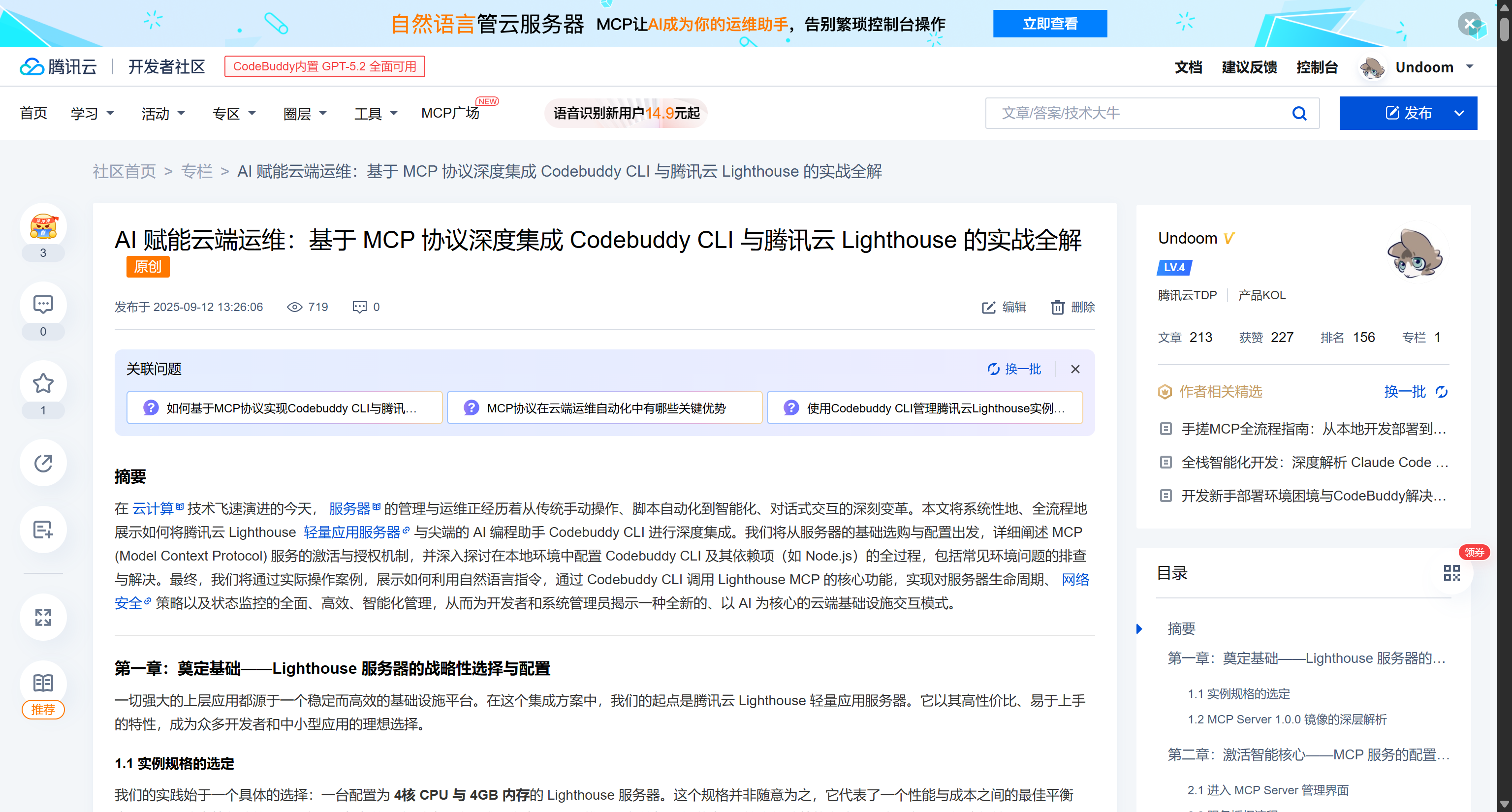 凭借对 CodeBuddy 的深度应用与技术解析,在年底的腾讯云大会上获得了最具价值原创作者的荣誉。这不仅是对个人技术探索的肯定,也是 AI 辅助开发模式逐渐成为主流的有力证明。