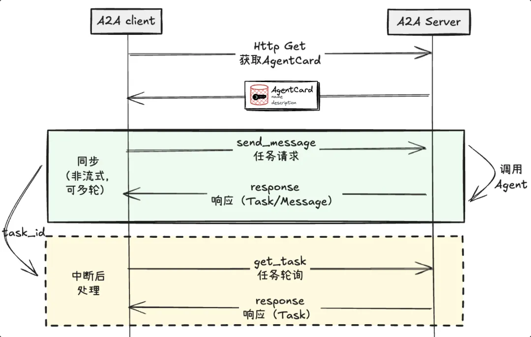 A2A 支持同步和流式两种交互模式,适配不同场景需求: