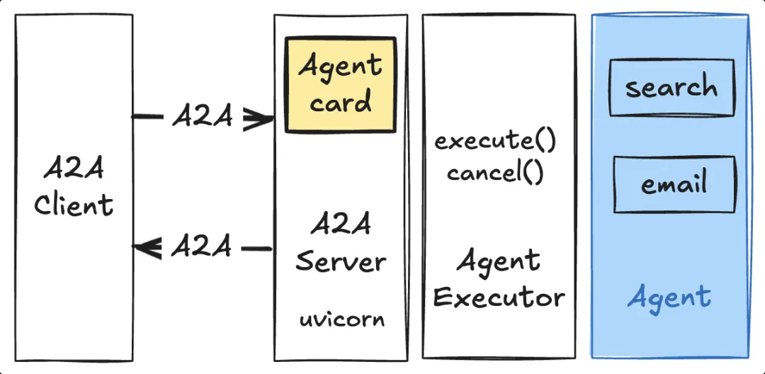 🟡A2A Server:提供服务的智能体服务端,通常基于 uvicorn/FastAPI 搭建;